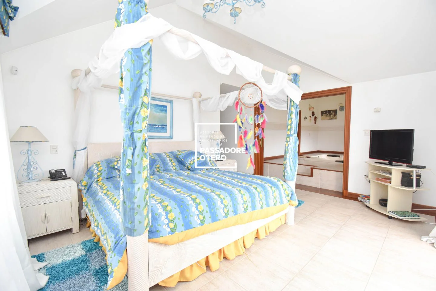 EXCELENTE CASA UBICADA A METROS DEL MAR EN LA PARADA 14 MANSA Ubicada en una zona privilegiada, esta espectacular residencia combina lujo y confort en cada rincón. Su sólida construcción cuenta con losa radiante, sauna y un amplio living comedor ideal para reuniones familiares o sociales. En la planta baja, encontrarás un elegante toilette, una barbacoa cerrada para disfrutar todo el año, una cocina espaciosa, y un cómodo playroom con baño propio. Además, el garage tiene capacidad para dos autos. En la planta alta, la casa dispone de cinco amplias suites, además de una master suite que se destaca con vistas panorámicas al mar, ofreciendo el máximo nivel de privacidad y comodidad. El exterior no decepciona: un extenso y cuidado jardín rodea la propiedad, acompañado de una piscina climatizada y cerrada, ideal para relajarse en cualquier época del año. Con esta descripción se intenta destacar los puntos claves de la propiedad, como su ubicación y demas características de lujo, detalles que hacen de esta casa una opción única cerca del mar. No dudes en contactarnos!!! . Caracteristicas: DORMITORIO EN SUITE, GARAJE, LIVING, LIVING COMEDOR, SPA, APTO PARA FAMILIAS/NI?OS, JACUZZI, SAUNA, COCINA XINTEL (PSD-PSD-8023)