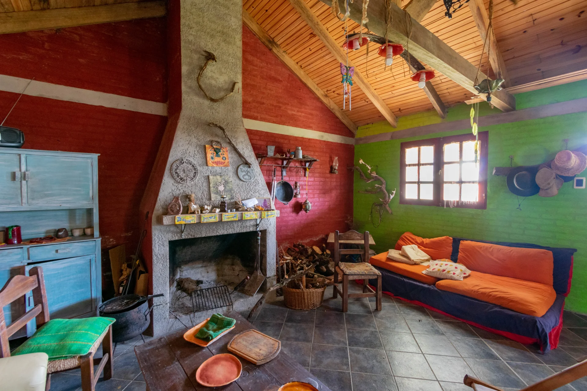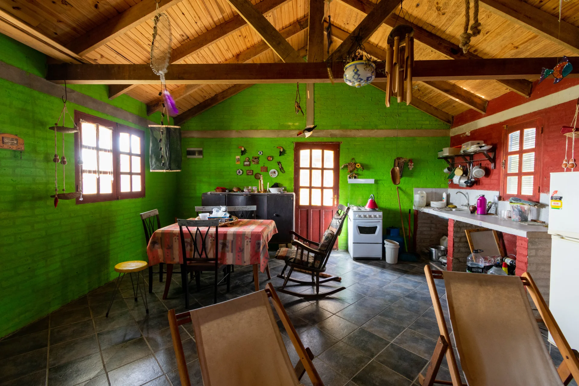 Construcciones: galpón y casa de campo con amplio living-comedor con estufa, cocina integrada, 2 dormitorios y 1 baño.
