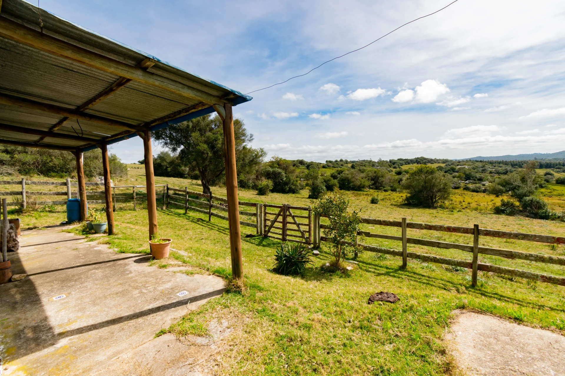 Servicios: luz eléctrica y pozo de agua con bomba sumergible que alimenta tanque. Entorno natural con cañada y monte de coronillas.