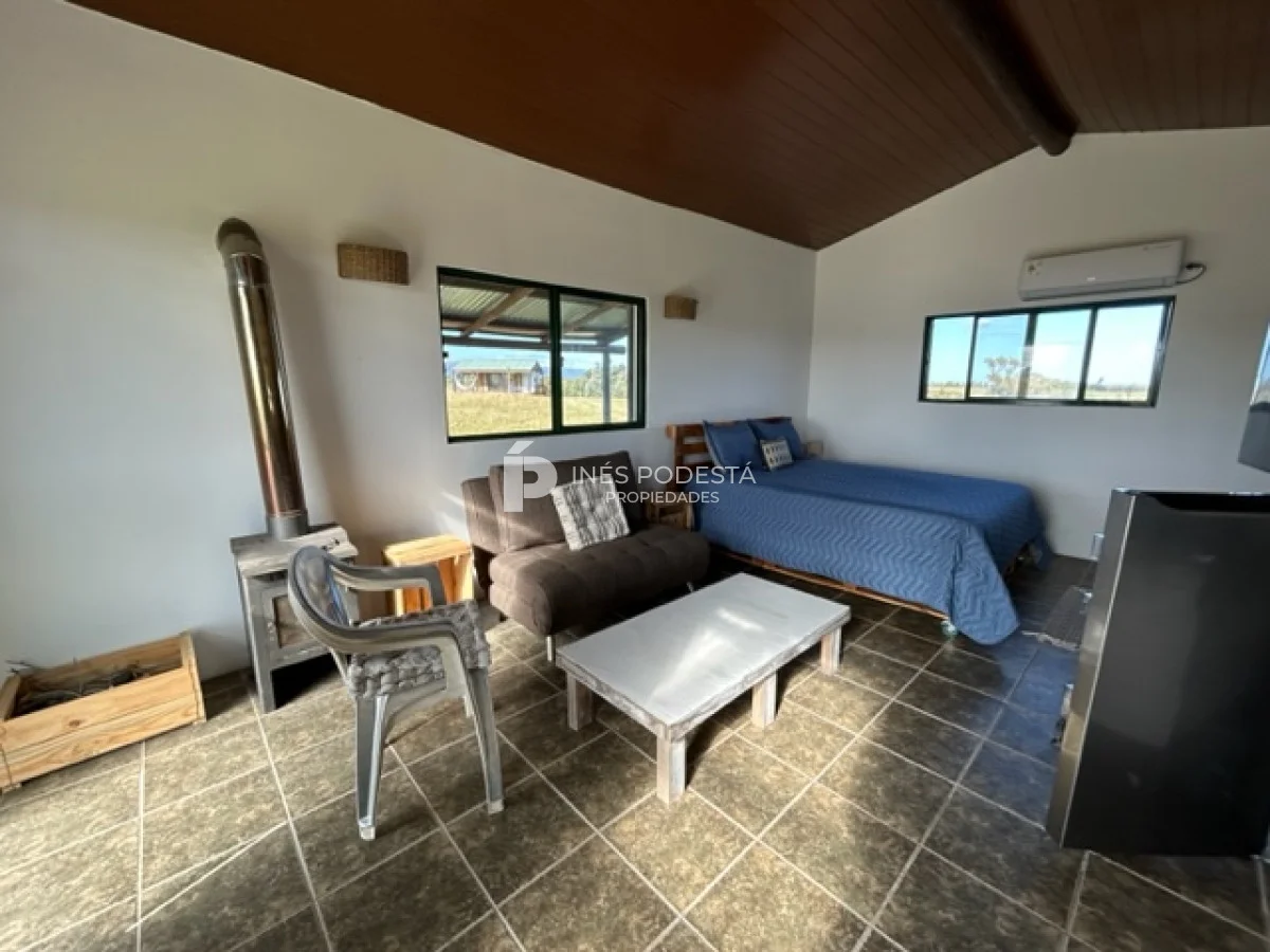 Yendo por ruta 9 a la altura del km 82, ingreso 2, 5 kms hacia adentro y luego 1,5. Entorno increíble, cantidad de árboles plantados, próximo a los pozos azules. Cuenta con 2 casitas muy simpáticas en perfecto estado y a 50 mts una de la otra, pura vista, pura energía, galponcito. Además tiene con luz eléctrica, AA para calefaccionar una y estufa a leña la otra.