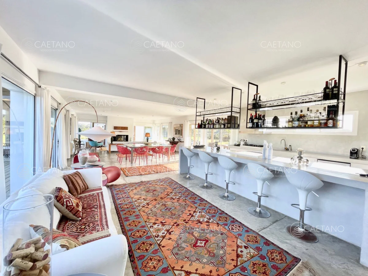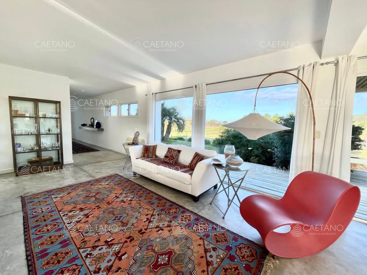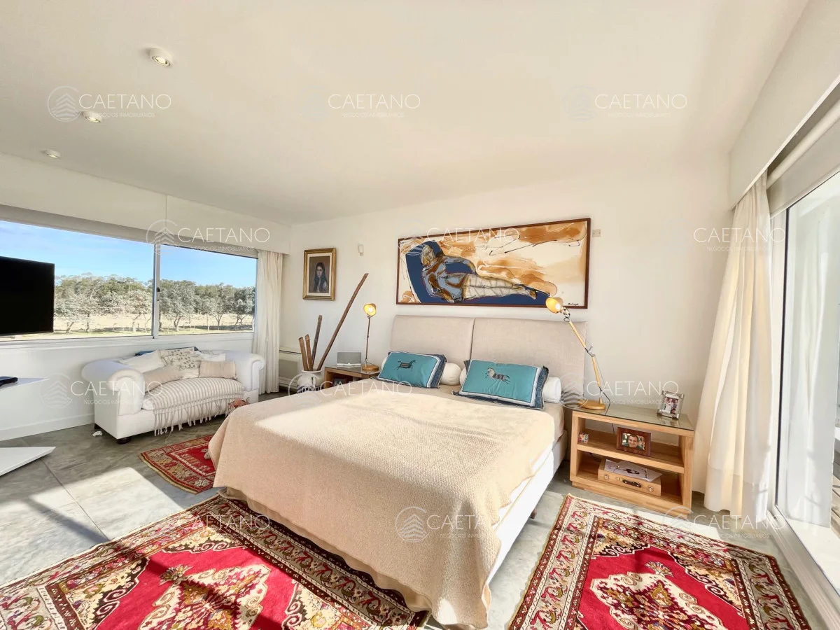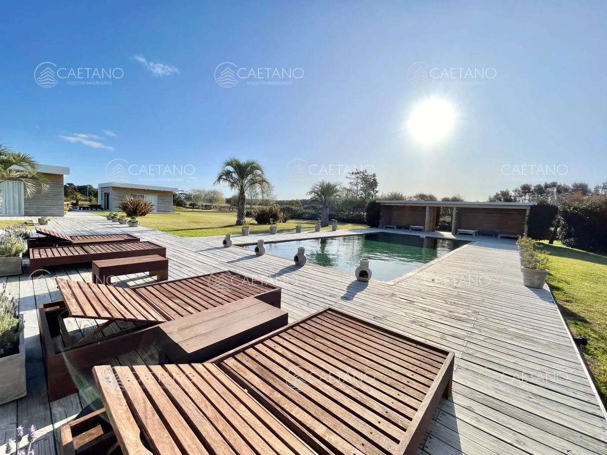 En Arenas de Jose Ignacio , sobre 5,5 hectáreas , ruta 10 , km 188, a 800 mts del mar se ubica esta moderna y espectacular chacra Completamente equipada y con gran decoración minimalista. Sobre 900 mts de construccion la casa posee : 3 plantas Superior: dos dormitorios en suite Planta baja :office room con baño Subsuelo: dormitorio en suite , con living y cocina propios El living es amplio, con cocina integrada, estufa leña Luego hay dos bungalows al lado de la piscina con dormitorios , baños completos y equipados (aire acondicionado, TV, etc) La propiedad cuenta con cancha de futbol, gimnasio, cancha de squash, cuatriciclos, bicicletas, gimnasio y tajamar. Además cuenta con dos dormitorios de servicio completos. No dude en consultar Referencia Interna : Tera-10017