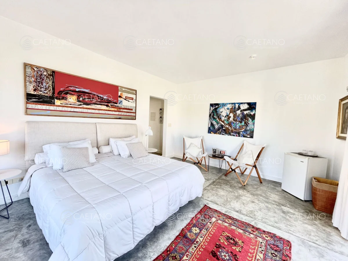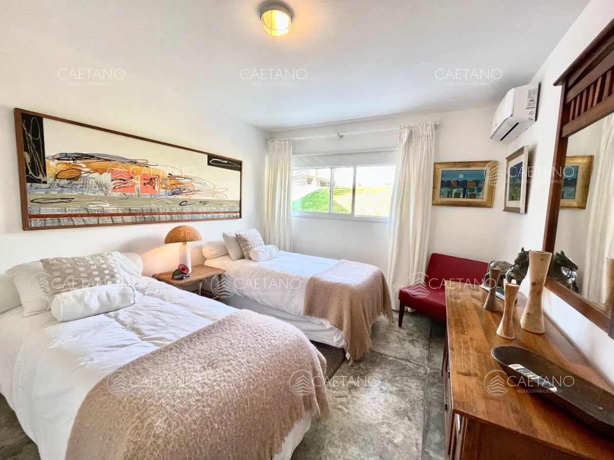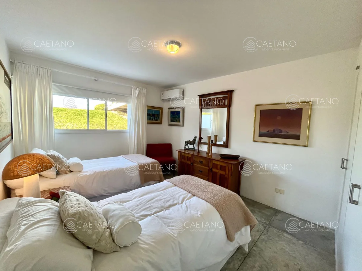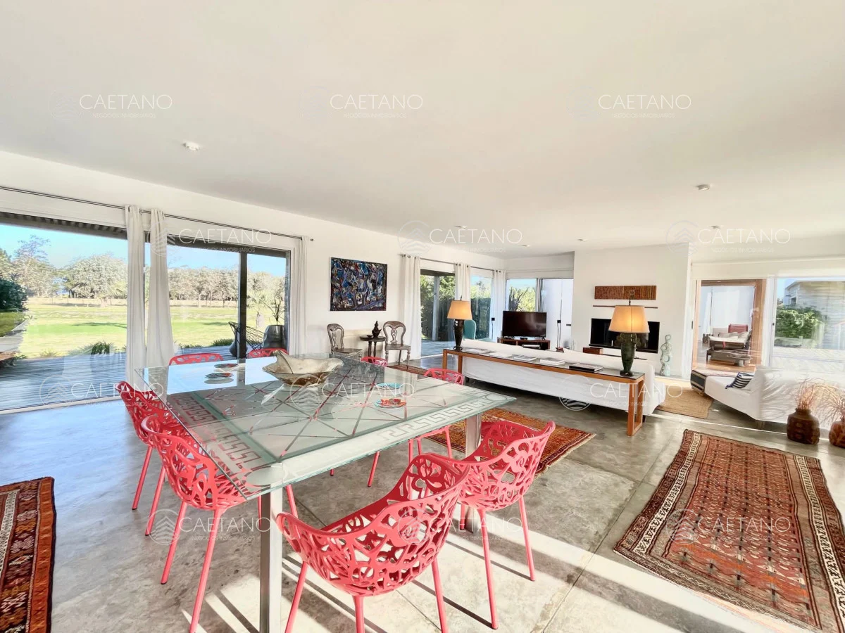 En Arenas de Jose Ignacio , sobre 5,5 hectáreas , ruta 10 , km 188, a 800 mts del mar se ubica esta moderna y espectacular chacra Completamente equipada y con gran decoración minimalista. Sobre 900 mts de construccion la casa posee : 3 plantas Superior: dos dormitorios en suite Planta baja :office room con baño Subsuelo: dormitorio en suite , con living y cocina propios El living es amplio, con cocina integrada, estufa leña Luego hay dos bungalows al lado de la piscina con dormitorios , baños completos y equipados (aire acondicionado, TV, etc) La propiedad cuenta con cancha de futbol, gimnasio, cancha de squash, cuatriciclos, bicicletas, gimnasio y tajamar. Además cuenta con dos dormitorios de servicio completos. No dude en consultar Referencia Interna : Tera-10017