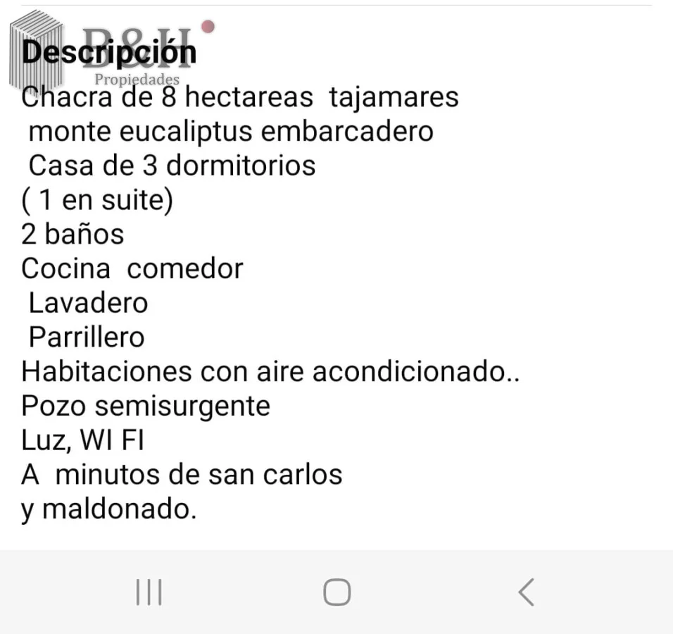 Ademas cuenta con pozo semisurgente y todo estos a tan solo minutos de la ciudad carolina y poco mas de Maldonado.