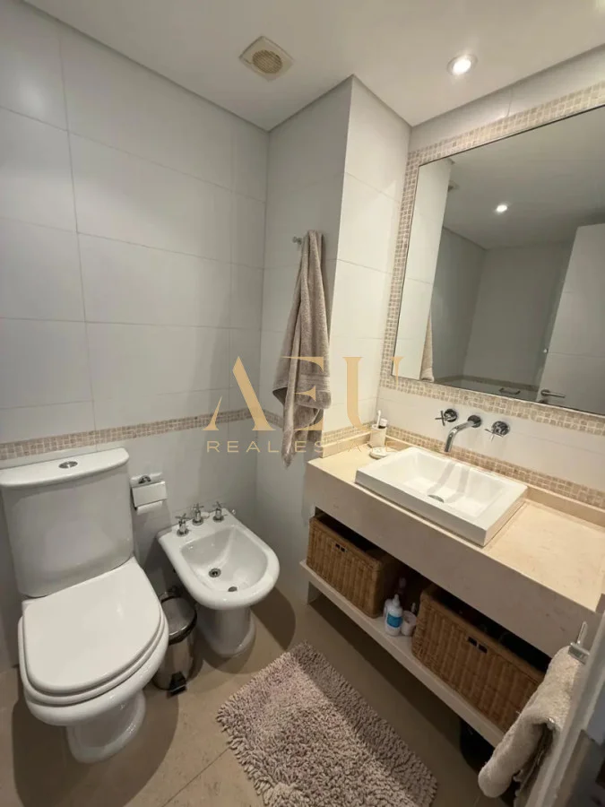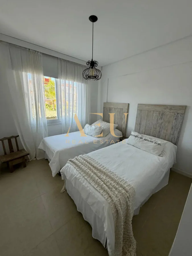 El departamento tiene 3 dormitorios, el principal en suite. La cocina, totalmente equipada, esta integrada al living-comedor. Posee un amplio balcón con parrilla y vista al mar.