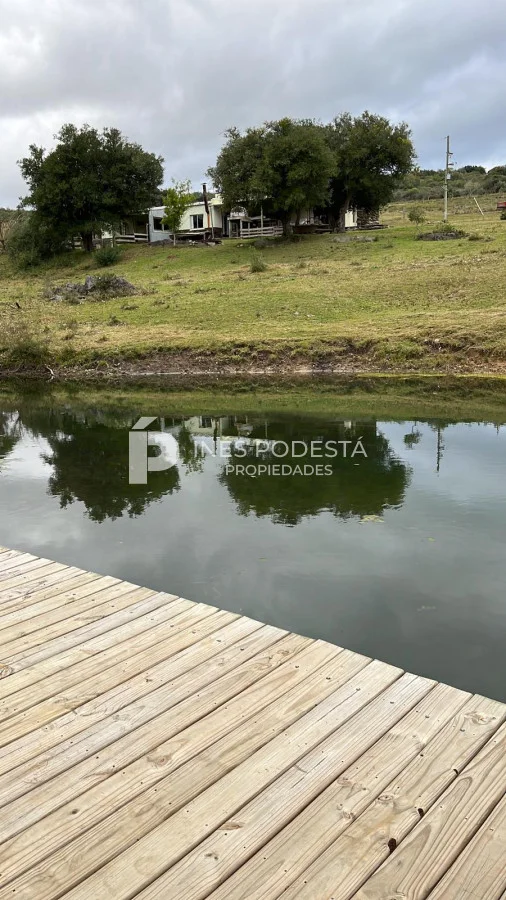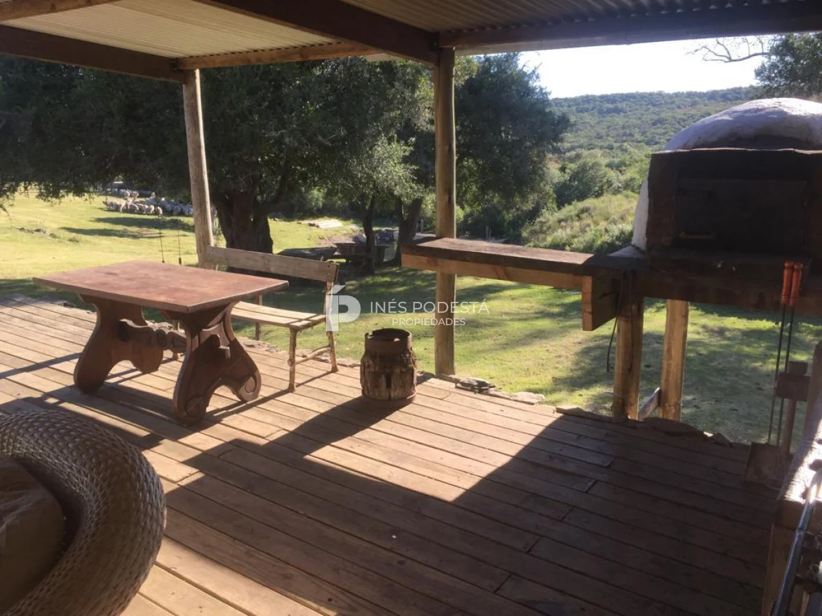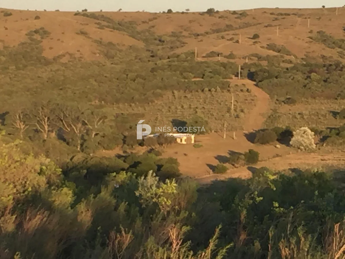 Muy pintoresco campo, próximo a Sacromonte y a unos 16 kms de Pueblo Edén, como también a 50 kms de las playas de Punta Ballena, Punta del Este, con paisajes serranos, cañadas rodeadas por el arroyo Carapé, lagunas de 80 metros por 16 metros, con 2 farallones de 15 metros de altura cada uno, con riscos de piedra de 15 metros de altura, árboles nativos, 10 hc de olivares (variedades Picual y arbequina), tapera con corral circular de piedra, 3 cerros de 250 metros de altura, montes nativos, flora y fauna autóctona (ciervos, carpinchos, zorros, zorrillos, lagartos, liebres, jabalíes, aves, etc. Además muy simpática casa de campo con living comedor con estufa a leña, más otra estufa a leña, cocina americana con desayunador, 3 dormitorios, 2 baños, estar, 3 calefactores a leña, deck de 50 m2 con parrillero y horno de barro, represa con espejo de agua a 30 mts de la casa, galpones, casa de casero de 2 contenedores con 1 baño (estado regular pero recuperable). Incluye 44 hectáreas con gran potencial por el piletón de agua natural de 20 metros de diámetro y además de un risco de más de 300 metros de altura para hacer una vivienda y tener vista de 360 grados. Para disfrutar, descansar, soñar, leer un buen libro, conectarse 100% con la naturaleza.