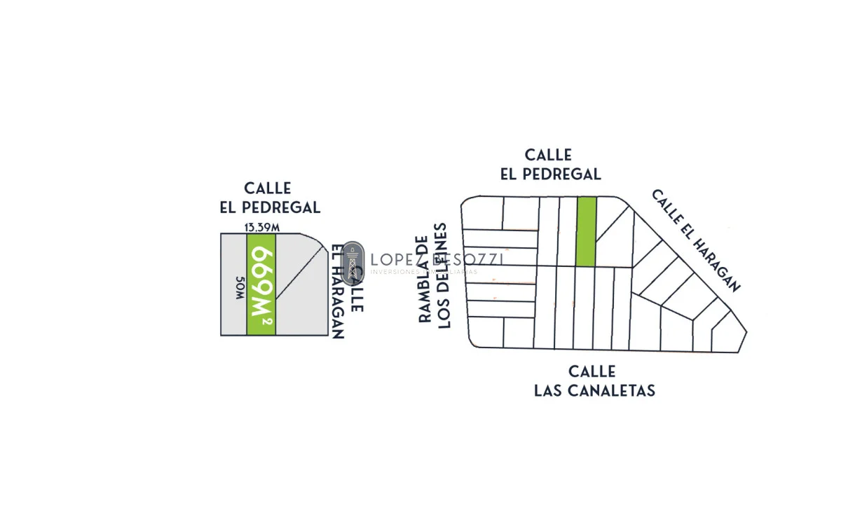 Cuenta con una superficie de 669m; frente sobre calle El Pedregal de 13,369 metros y laterales de 50 metros. Zona elevada por el cual cuenta con vista al mar (edificando en dos niveles) y cerros. Zona muy buscada por turistas y amantes del balneario cercano a ambas playas características de la zona (Mansa y Brava).