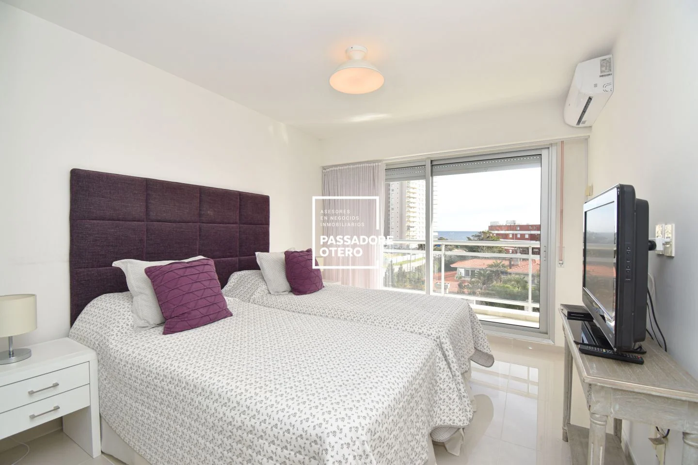 Sunrise Tower está situado en Punta del Este, en una localización que le permite gozar de las mejores vistas. Se encuentra además a solo 100 metros del Hotel Enjoy. Esta torre de apartamentos cuenta con la firma del reconocido Arquitecto Carlos Ott, en su arquitectura. De este modo Sunrise Tower, logra un diseño moderno y único sobre la costa de la Playa. Servicios & Amenities Vigilancia 24hs, Piscinas Abierta y Cubierta, Gimnasio, Sala de Masajes, Sauna Húmedo, Hidromasaje, Servicio de Mucamas y Lavandería. Unidad esquinera de 3 suites + Serv con baño. Amplio living comedor en "L" con gran superficie vidriada, baño social y estilizada terraza que cubre 90º hacia la playa Mansa. Destacada suite principal con placares, baño con hidromasajes y acceso a terraza principal... Consúltanos!!! XINTEL (PSD-PSD-8189)