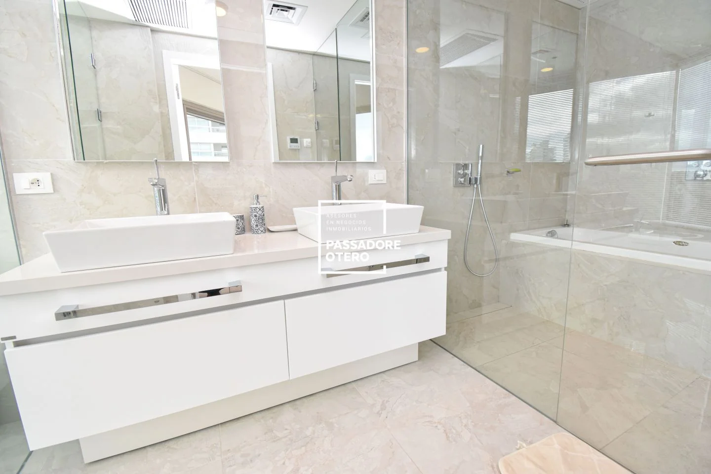 Excelente apartamento ubicado estratégicamente en la Parada 9 1/2 de la Brava, forma parte de la deslumbrante Trump Tower Punta del Este, caracterizada por sus cristales brillantes que en su forma circular reflejan las olas gentiles que llegan del Océano Atlántico. Con una superficie de 120 metros más la cochera, este departamento nos ofrece 2 dormitorios en suite más toilette, Cocina integrada al living comedor con una hermosa vista a la playa Brava y una amplia terraza.- Cuenta también con área de lavadero.- Aire acondicionado central.- La unidad cuenta con todos los servicios de la Torre Premium de Punta del Este.- Consulte con nuestros asesores para obtener más información y comience a disfrutar de esta increíble propiedad! www.passadore-otero.uy . Caracteristicas: DORMITORIO EN SUITE, GARAJE, SALA DE JUEGOS, APTO PARA FAMILIAS/NI?OS, CANCHAS DEPORTIVAS, SERVICIO DE LIMPIEZA, VISTA AL MAR XINTEL (PSD-PSD-8047)