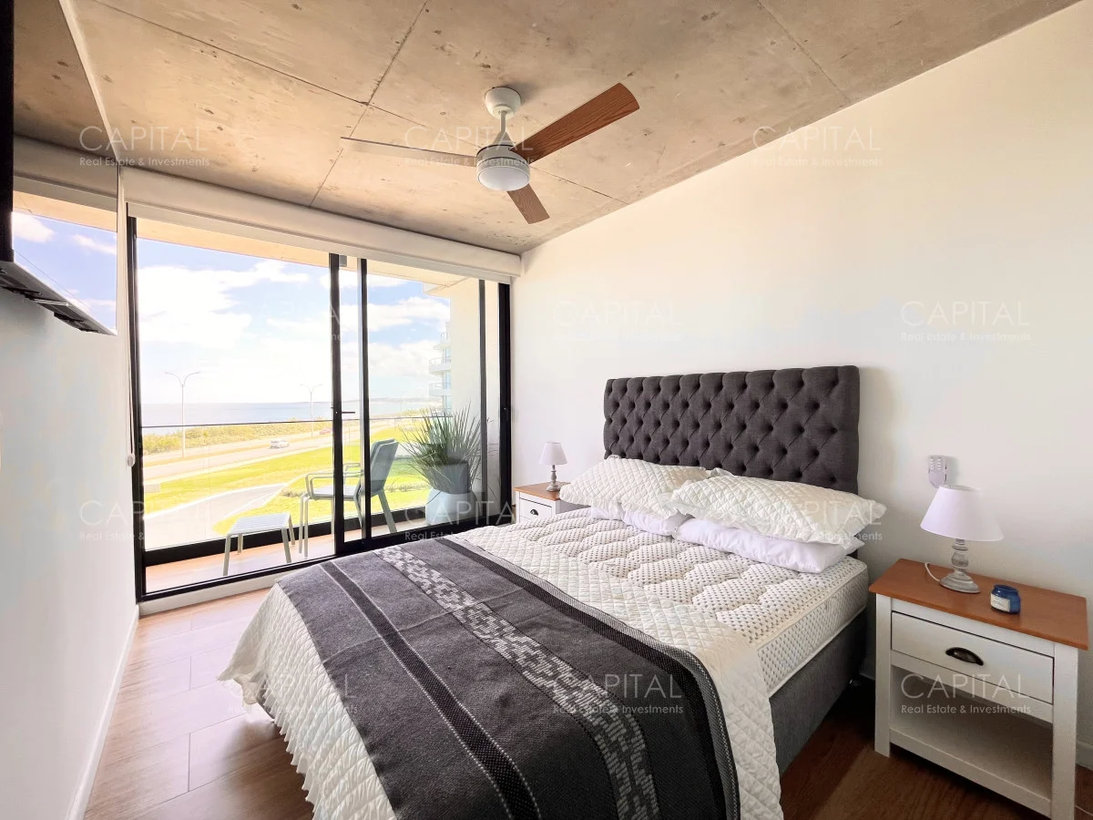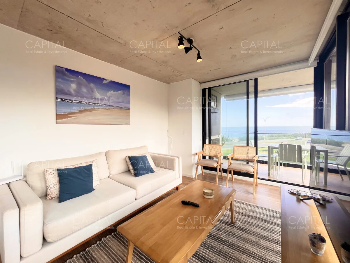 Disfrutá tus vacaciones en un moderno apartamento en primera línea sobre la Playa Mansa, con una vista inigualable al atardecer.