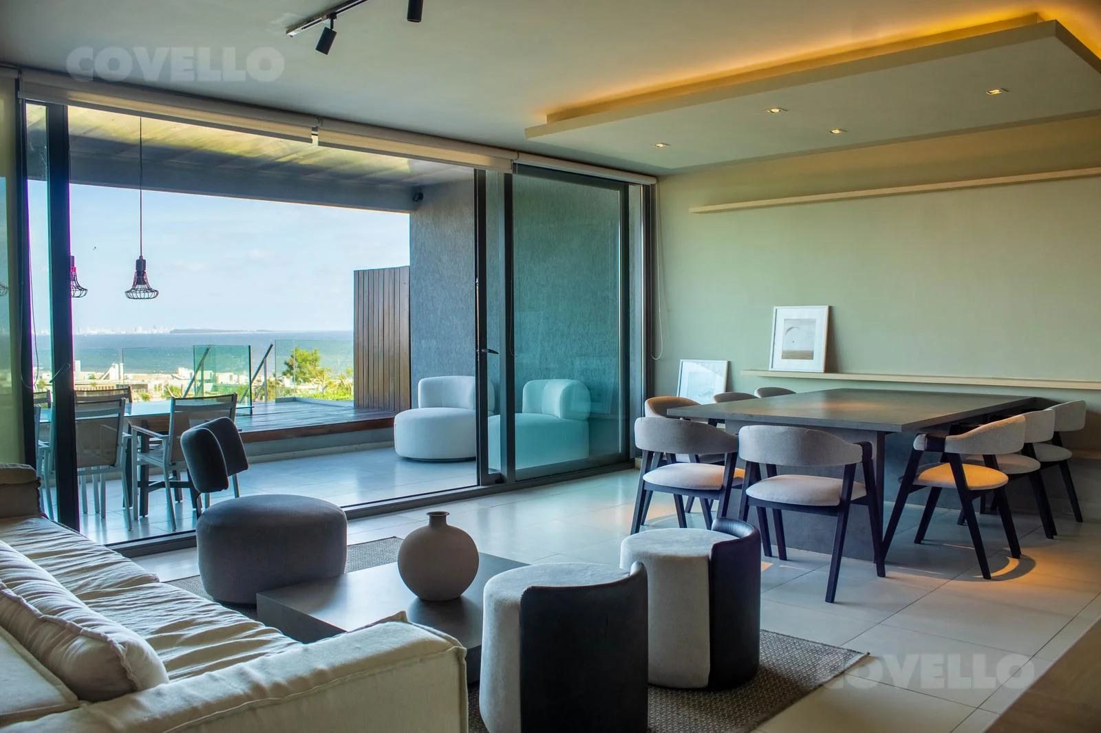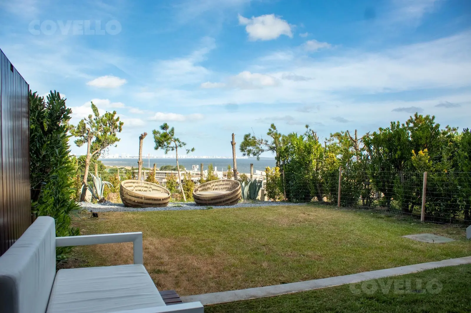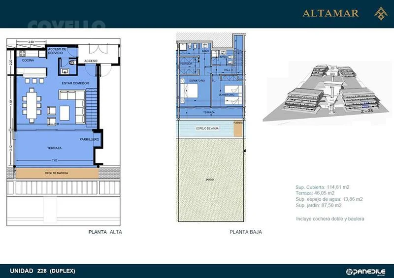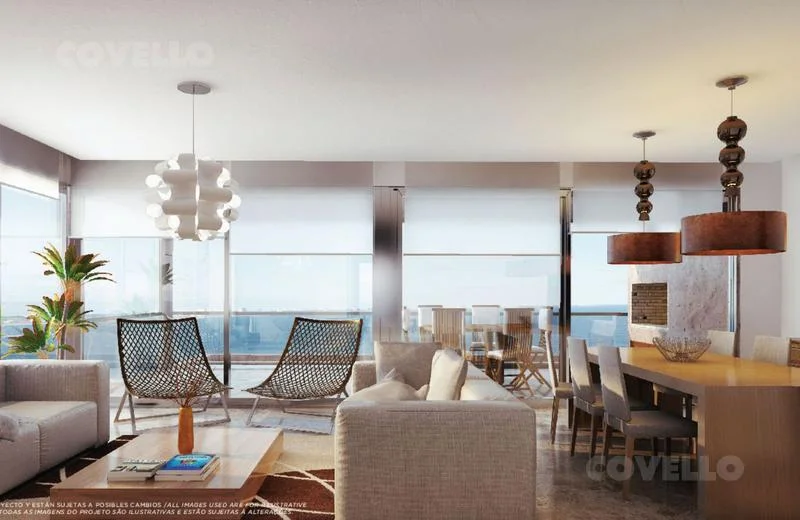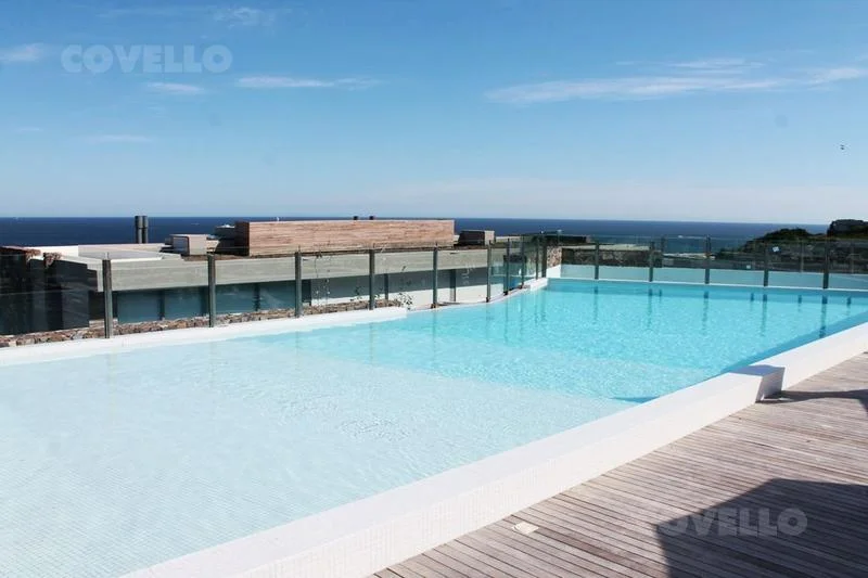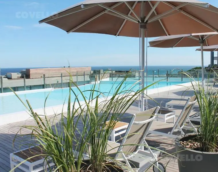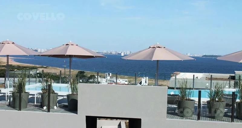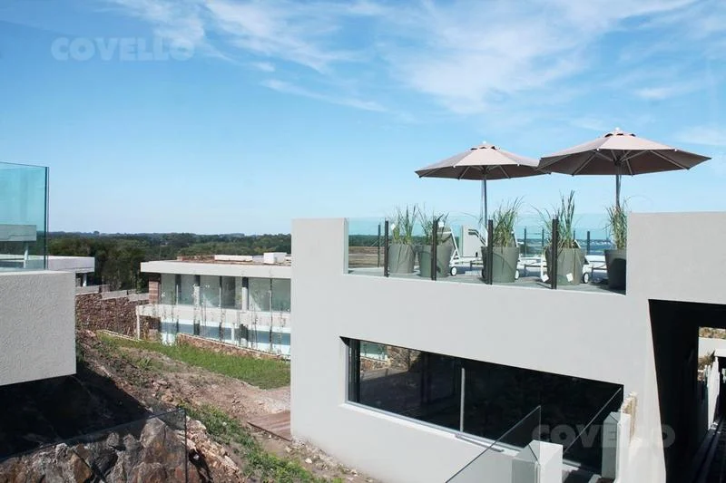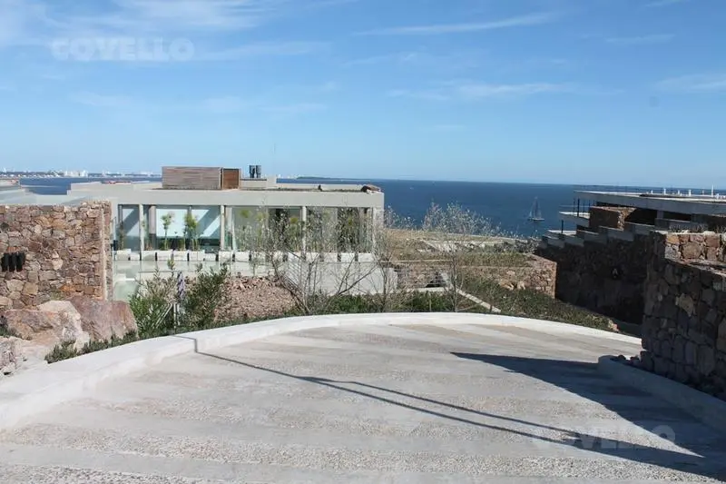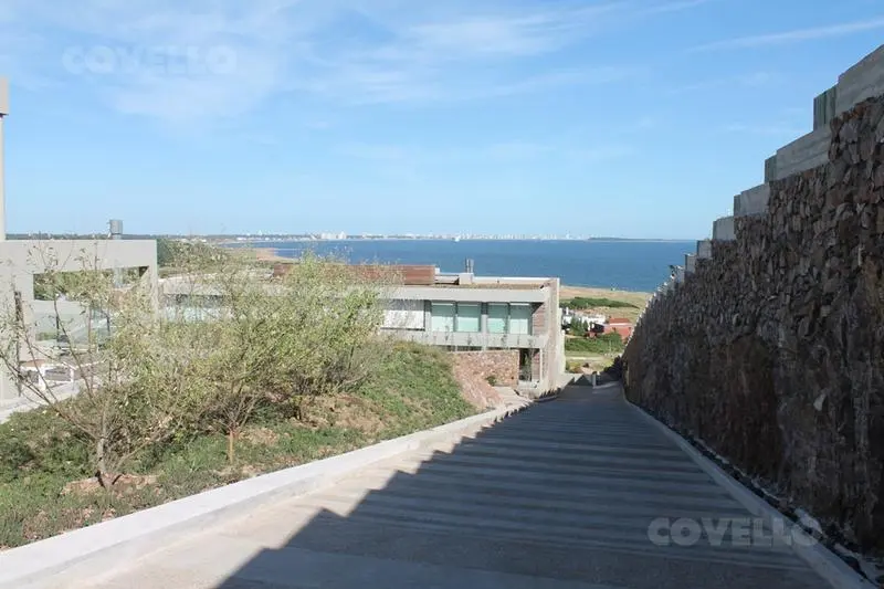 En planta alta cuenta con living comedor, cocina integrada, toilette y amplia terraza con excepcional vista al mar y a la Bahía de Punta del Este. Salida directa al jardin.