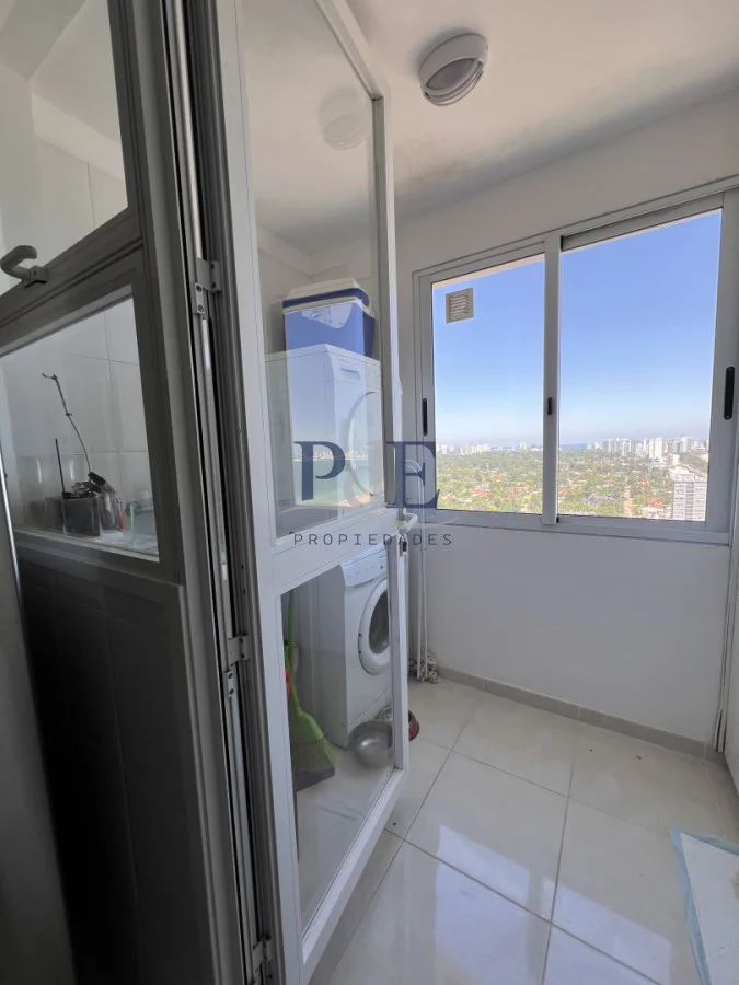 El apartamento gracias a ser esquinero, la orientación y la altura tiene una excelente vista al mar y a la isla Gorriti en el marco natural de un extenso bosque.