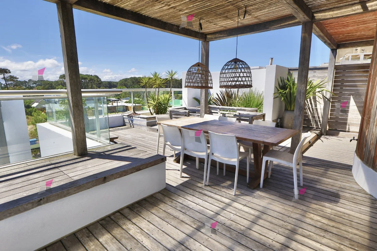 En el nivel superior, al que se accede por ascensor, se encuentra una amplia terraza tipo azotea con parrillero y vistas panorámicas al mar, ideal para disfrutar del exterior con total privacidad.