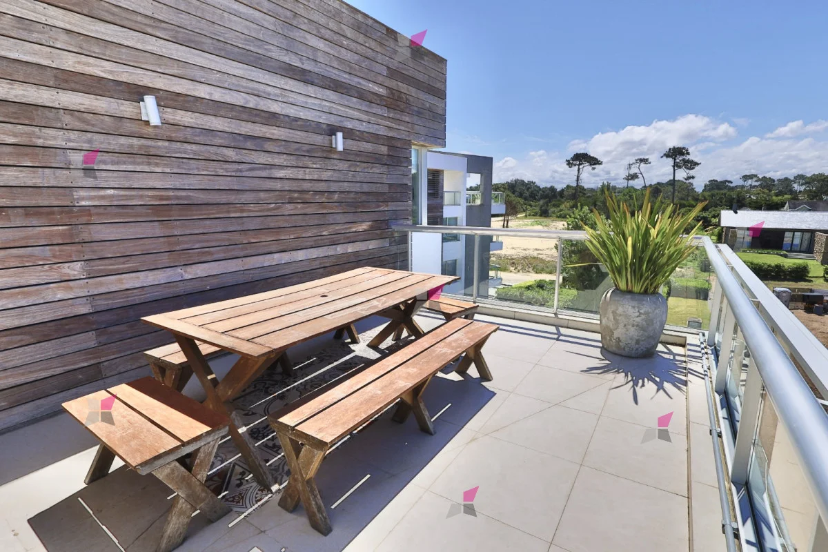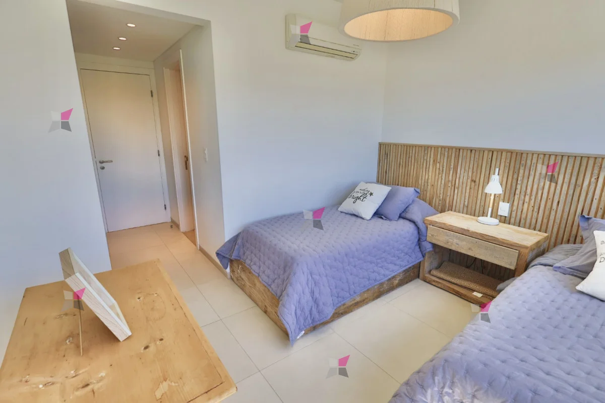 Dispone de dos dormitorios en suite, ambos con vestidor; uno de ellos con salida a terraza privada también con vista al mar. La calefacción es por losa radiante sectorizada.
