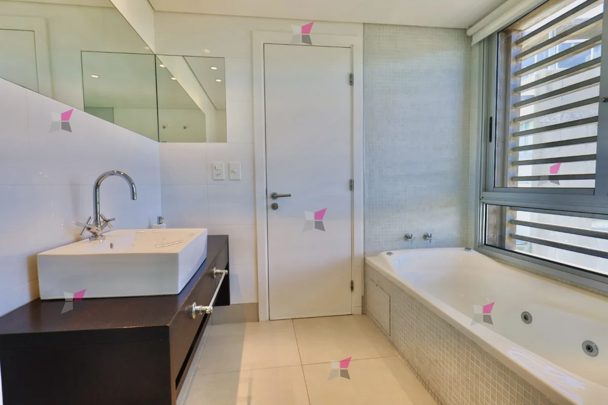 El edificio ofrece servicio de mucamas diario, piscina exterior con deck solárium, gimnasio, sauna y portería permanente.