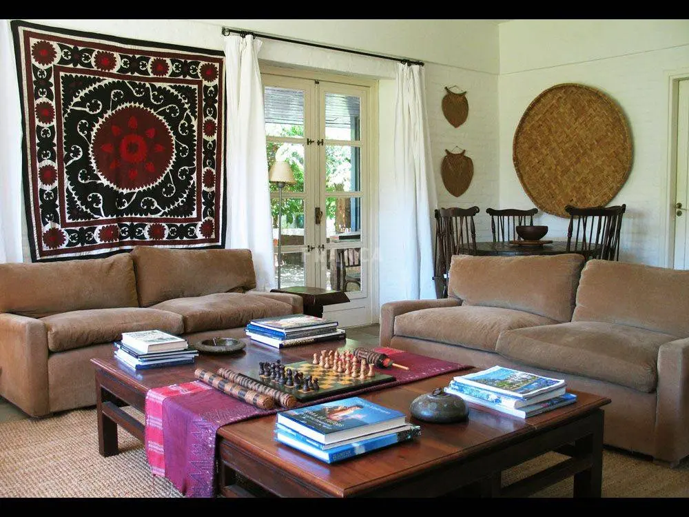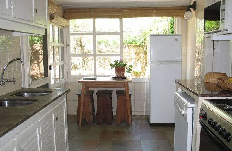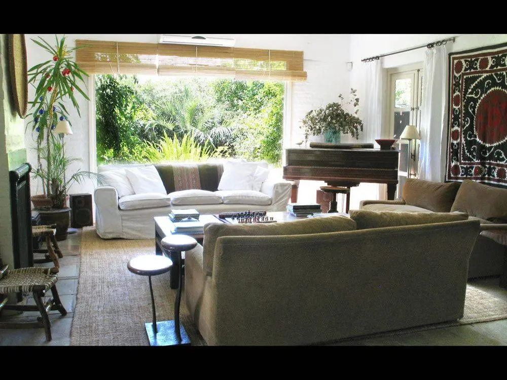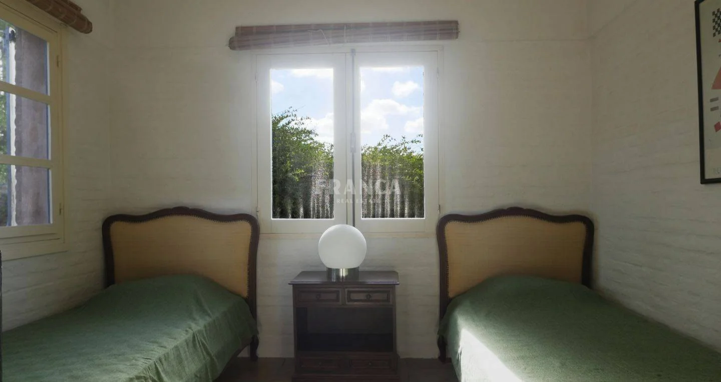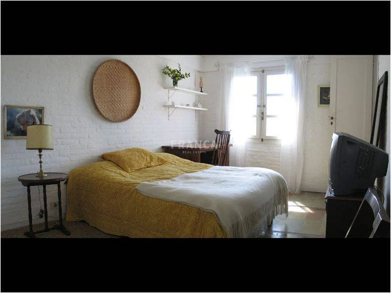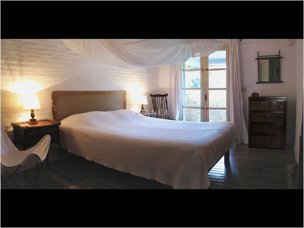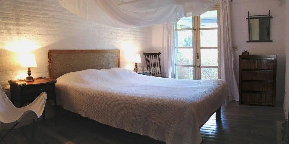 CHALET TOLEDO Excelente casa en La Barra con muy buena ubicación a 300m del mar. Rodeada de jardín cercado, con mucha privacidad. Amoblada con muy buen gusto. 200m2 construidos, 630 m2 terreno Exterior: Amplio jardín al frente con mucha privacidad. Patio interior con parrillero. Dos galerías techadas, una sobre el jardín al frente y la otra sobre patio interior y parrillero. Amplio tendedero de ropa oculto a la vista detrás del parrillero. Cochera. Planta baja Living comedor con ventanales al jardín y al patio interior, aire acondicionado y estufa a leña, Dormitorio principal en suite con estufa a leña y vestidor. Toilette. Dependencia de servicio en suite (sirve como 4to. dormitorio). Cocina Planta alta: Dos dormitorios amplios en suite, cada uno con 1 cama doble y 1 simple Amplia terraza sobre living y cocina. Equipamiento: Cocina a gas, 2 heladeras, lavavajilla, lavarropas, vajilla completa para 12 personas, microondas, licuadora, cafetera eléctrica, tostadora, aspiradora, enceradora, plancha, tabla de planchar, ventiladores, Tv por cable en living y en 2 habitaciones, conexión a internet por Fibra Óptica y WIFI. Alarma sectorizada y con respuesta. . Caracteristicas: COMEDOR, DORMITORIO EN SUITE, ENTREPISO, LAVADERO, LAVANDER?A, TOILETTE, ESPACIOS DEPORTIVOS, ESTACIONAMIENTO, PARQUE, PLACARD EN COCINA, PLACARD EN DORMITORIO, ALARMA, CALEFON, COCINA, HELADERA, LUZ ELECTRICA, SANEAMIENTO, WIFI XINTEL (FRO-FRO-109)