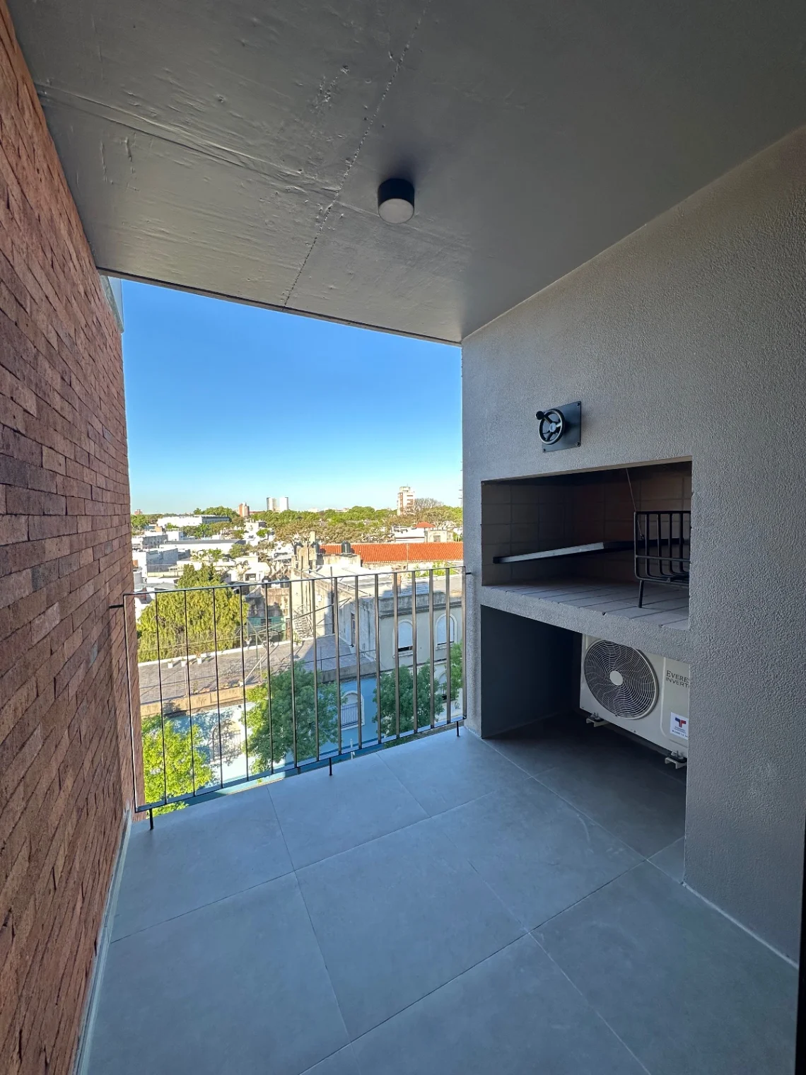 Aire acondicionado en estar-comedor y dormitorio, conexión para lavarropas, mampara y buen espacio de guardado.