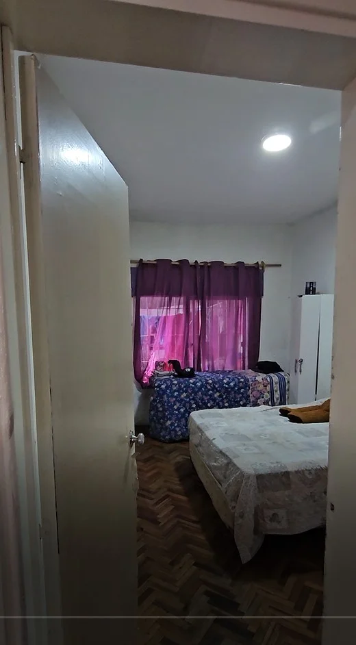 Con orientación NW, sólida casa, sin humedades, luminosa y con ambientes grandes. Su distribución de espacios ofrece 2 dormitorios con baño al medio en un lado y del otro lado living, comedor y cocina en forma continuada e integrada. Son dormitorios grandes, de aproximadamente 5.5 x 3.3 metros cada uno, separados por baño principal en el medio. Tienen pisos en perfecto estado, aire acondicionado y ventanas grandes al exterior, siendo que un dormitorio mira al frente y el otro al patio o fondo. Cocina grande, con mesada, placares y espacio para un comedor grande. Living al frente. Todos los espacios son exteriores, tiene Ventanas con Cortina de enrollar, Rejas, y con ventanas e iluminación natural hasta en el baño. Al frente tiene un jardín y cochera Al fondo tiene un patio grande, semi techado y Parrillero Pisos monolíticos de color en Living, cerámicos en la cocina y parqué en dormitorios. Baño con mampara en la ducha. Cocina con placares sobre y bajo mesada Patio con parrillero Seguridad: tiene rejas en todos las aberturas inclusive en el techo del patio que no es techado CALLE SANTA ANA Y FRANCISCO ROMERO, A POCOS METROS DE AV. SAN MARTÍN