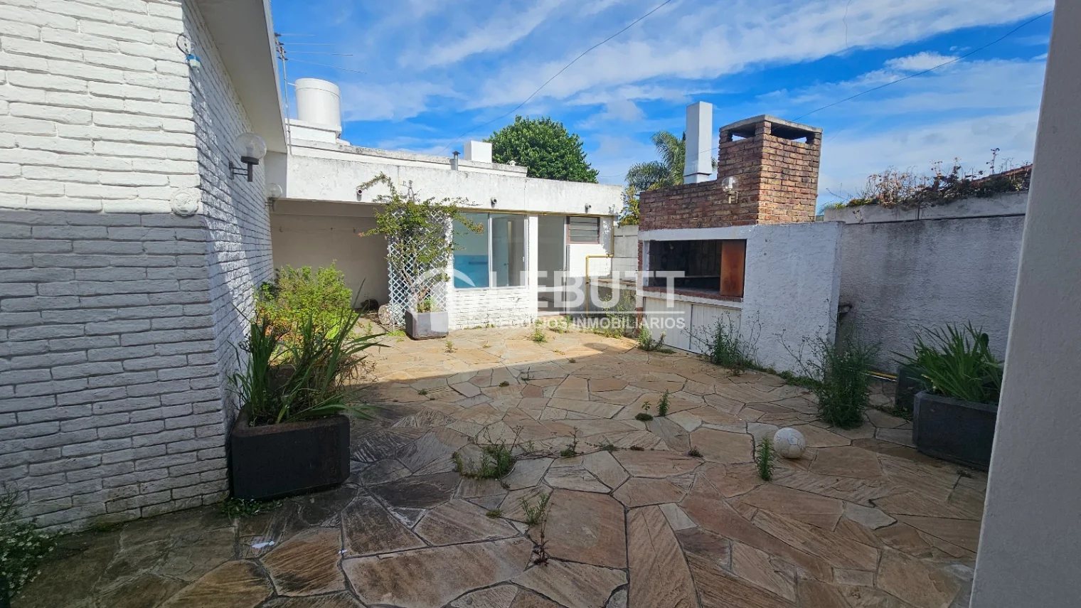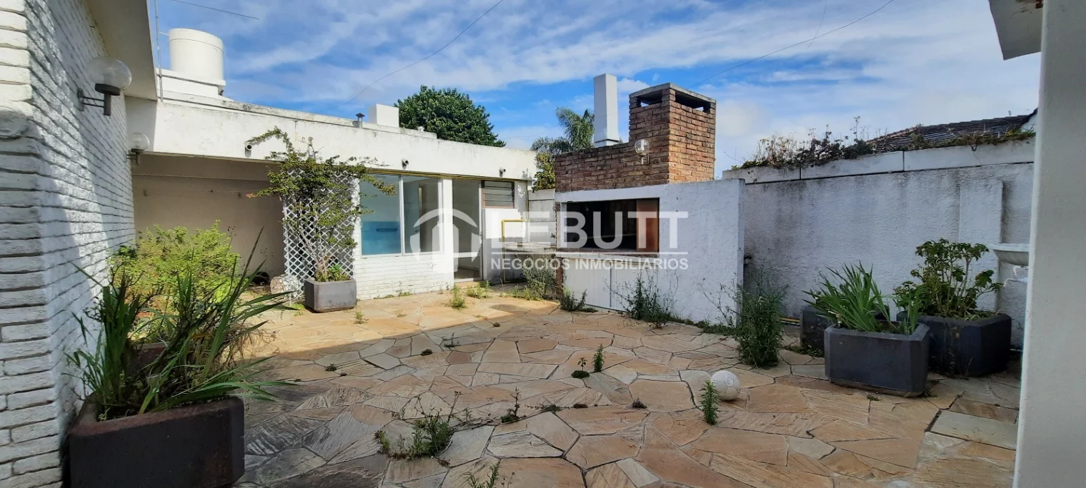 Jardín al frente y Patio grande al fondo con Parrillero. Incluye acceso a cochera por 2 calles con portón corredizo y un garaje cerrado para uno o dos autos adicionales, permitiendo estacionar un total de 6 a 7 autos dentro del predio.