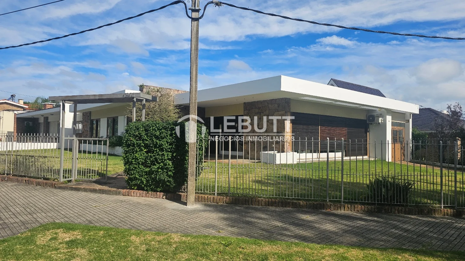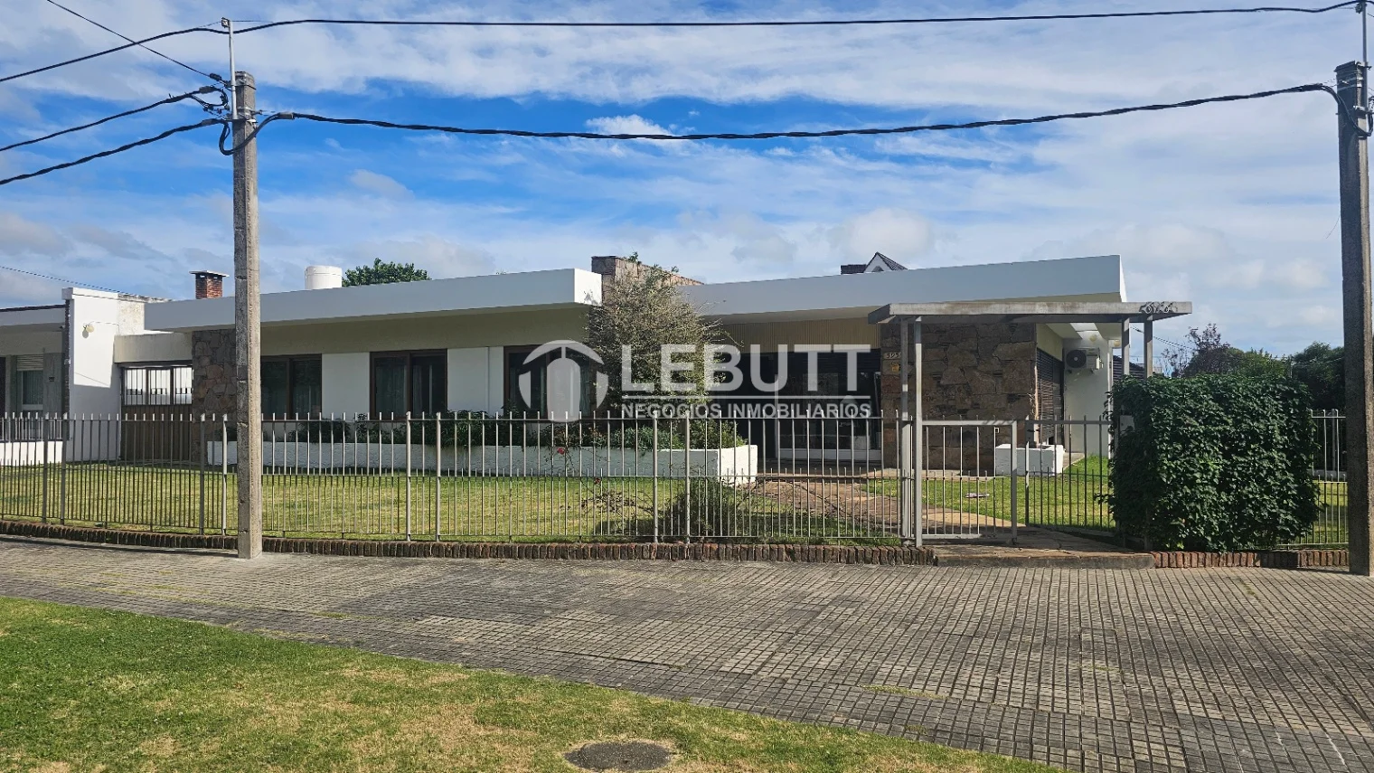 El interior se distribuye eficientemente con un hall de entrada, a Living con Estufa a leña y área de Escritorio y un Comedor diario que se conecta a un amplia Cocina definida con accesibilidad desde una de los garajes. Además, dispone de un Estar o espacio de trabajo con ventana doble hacia el frente. y Toilette y el área íntima por hall de distribución a 3 Dormitorios (2 con placares y doble ventana) y un Baño com Baños uno de ellos Social y el otro completo.