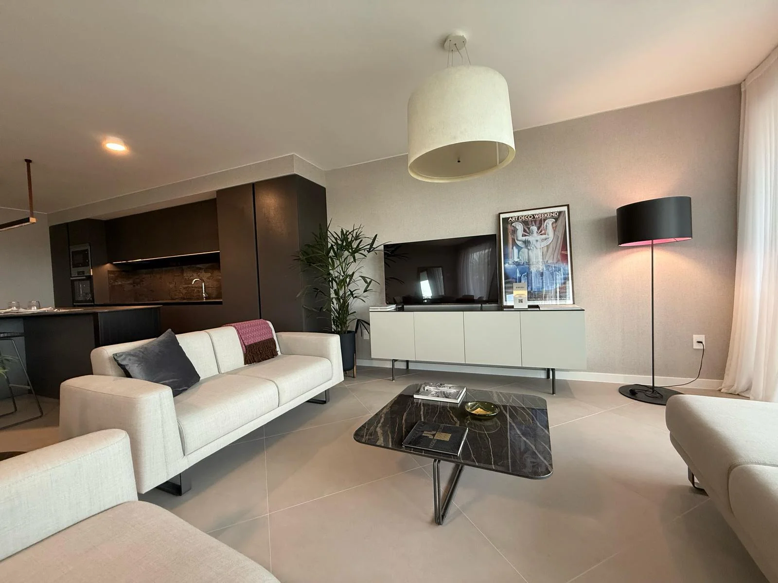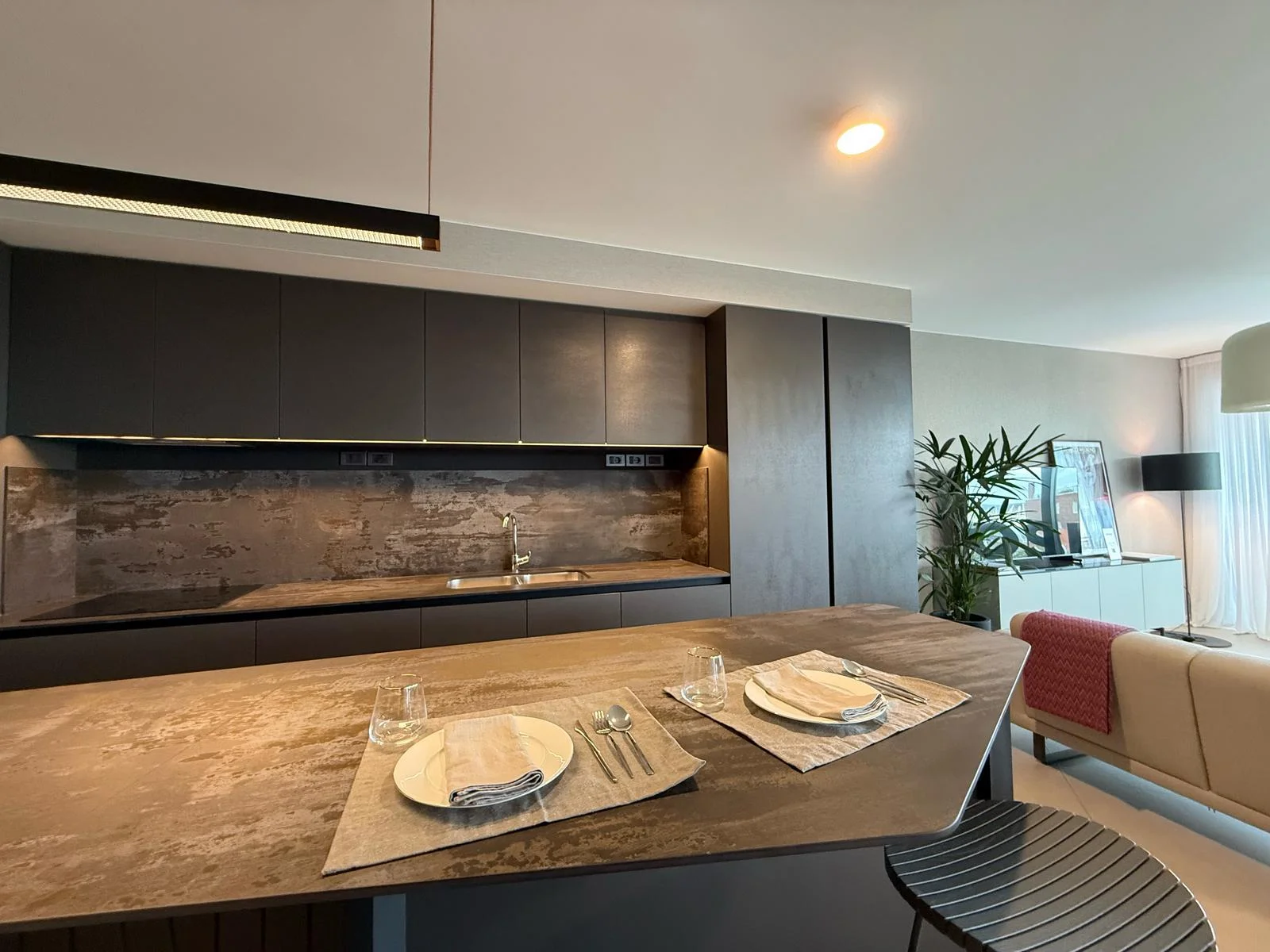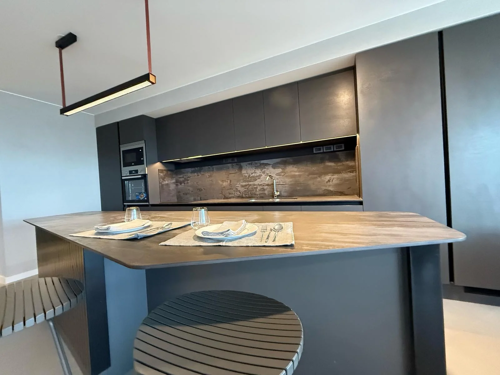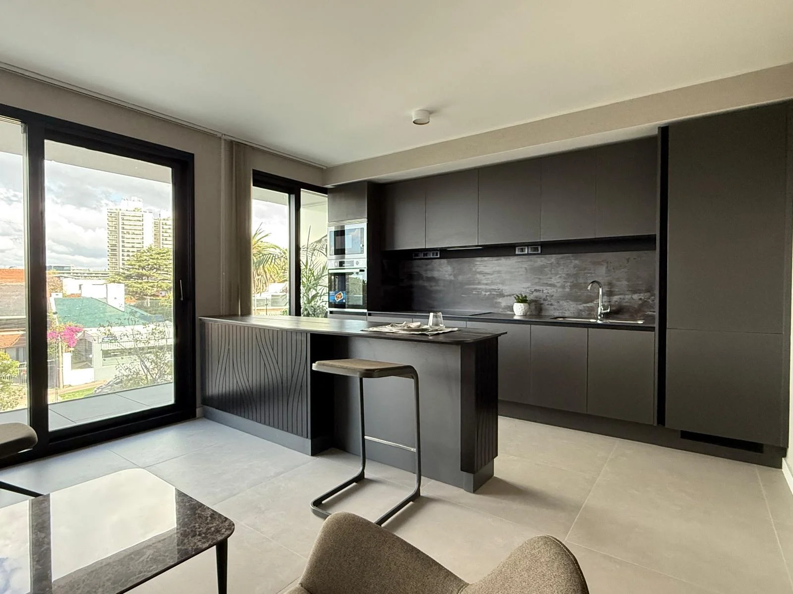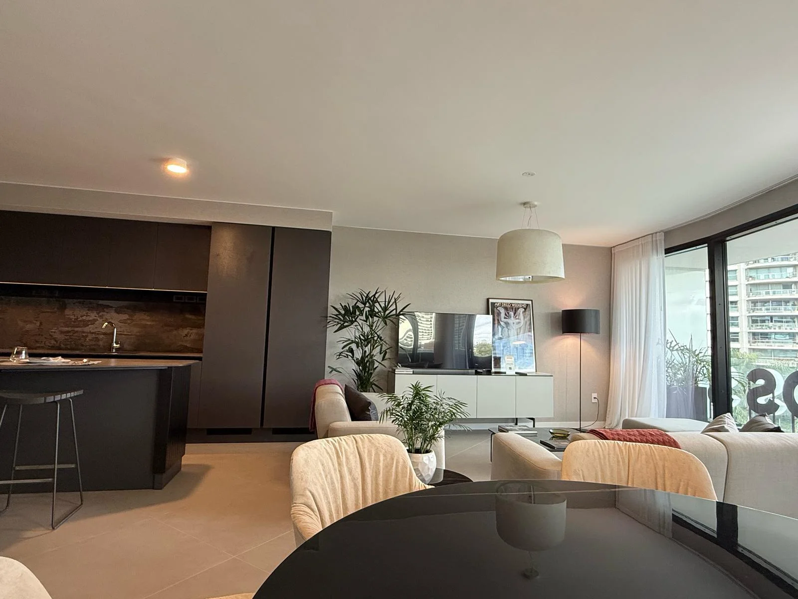 Equipado con: heladera, anafe, horno, lavavajilla, lavasecarropa, calefones, cortinas automatizadas, televisor oculto dentro de la isla automatizado para que se eleve arriba de la misma.