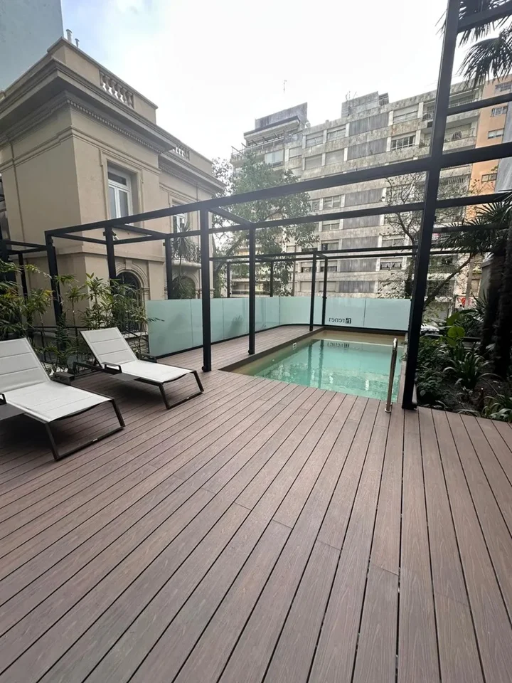 REF.: 5328 ARKADIA Inmobiliaria ofrece: Unidad en zona POCITOS, sobre Roque Graseras esquina Avenida Bv. España A 3200 metros de Rambla y una mas de Plaza Gomensoro Con excelentes servicios y locomoción Apartamento en piso 7 y otro en piso 8 , ambos al frente Super luminoso y A ESTRENAR! Cuenta con unos 45mts 1 Dormitorio definido con placar Living comedor con salida a amplio Balcon Ambos ambientes con Aire acondicionado Cocina integrada con anafe, horno y extractor Baño completo y Calefón COCHERA incluida! Edificio cuenta con Cámaras y Portería Virtual, Salón de uso común, Espacio exterior de uso común, Lavandería, Gimnasio, Piscina Permite mascota ALQUILER: $46000 GASTOS COMUNES: $5000/ $7000 GARANTIAS: PORTO O SURA CONTRATO A 2 AÑOS