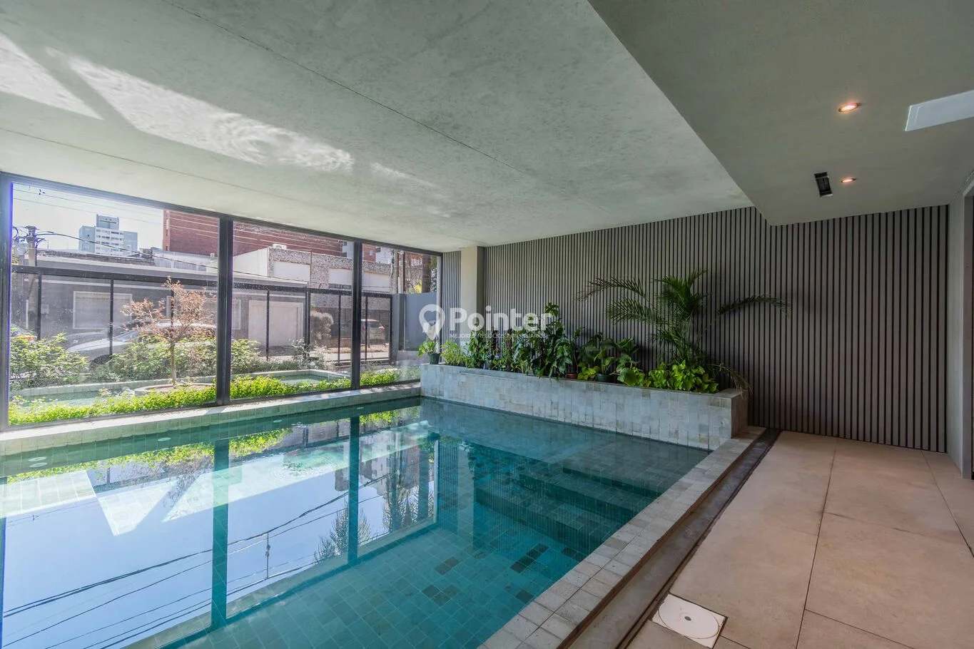 *Piscina de agua salada con cascada y vestuarios