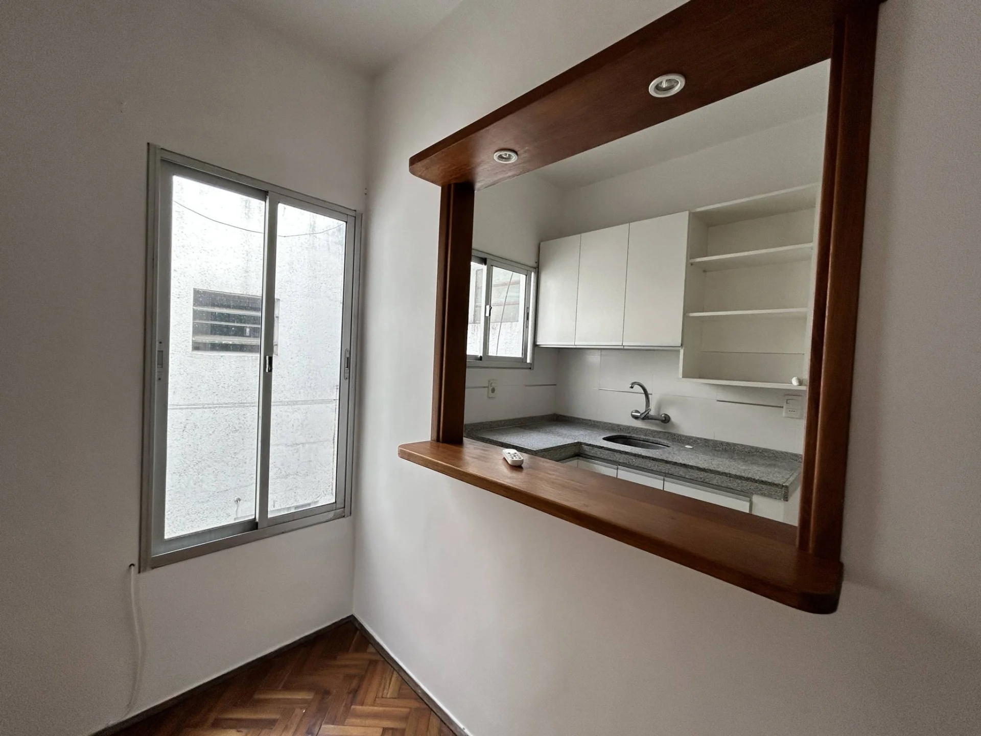 Cocina reciclada con pasaplatos y placares