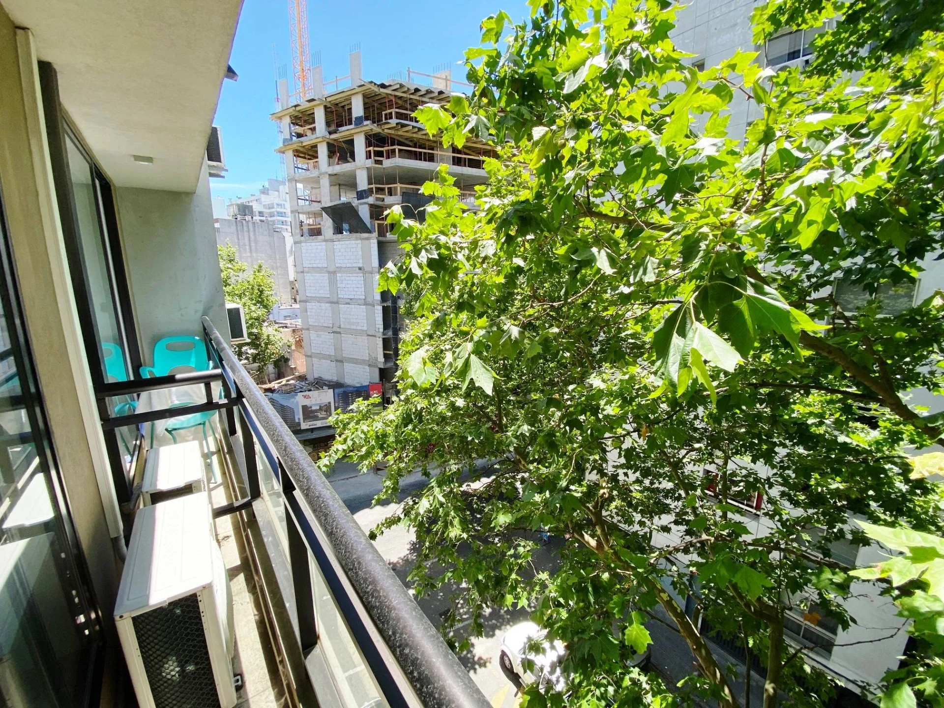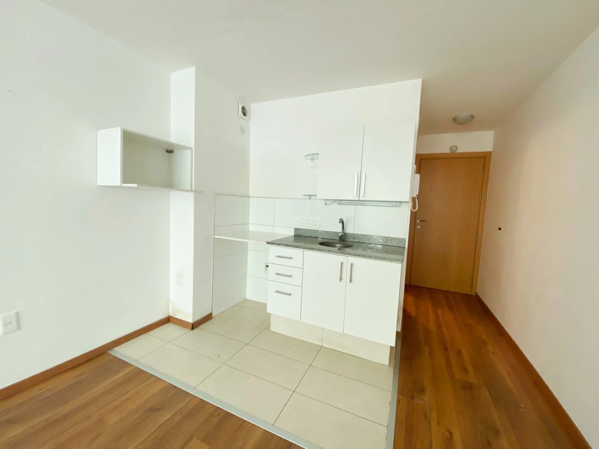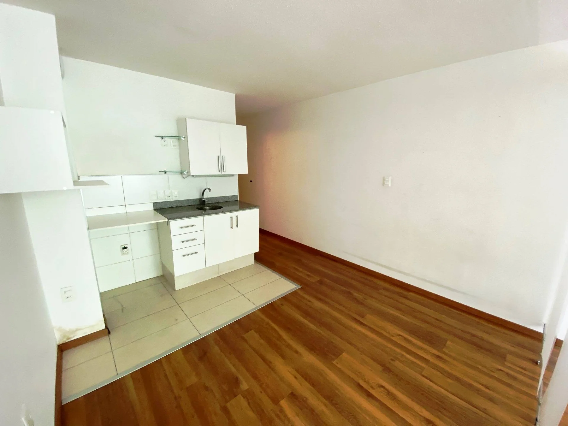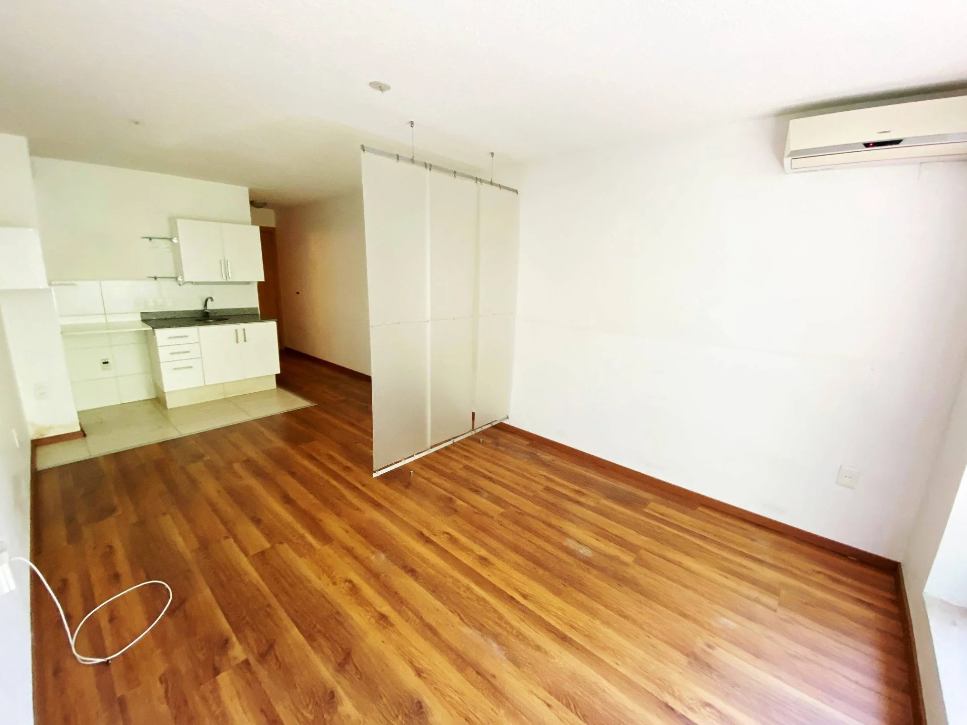 Ambiente con mampara divisoria Cocina integrada con placares aereos, bajo mesada y calefon Y baño completo El edificio cuenta con porteria 24hs, solarium, laundry y salon de uso comun con parrillero. Gastos comunes $3.300 Aprox.