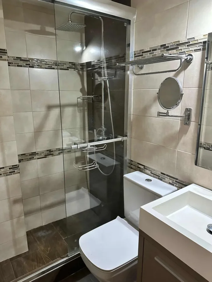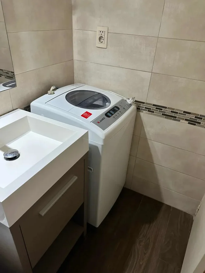 . Baño con conexión para lavarropas y mamapara de vidrio