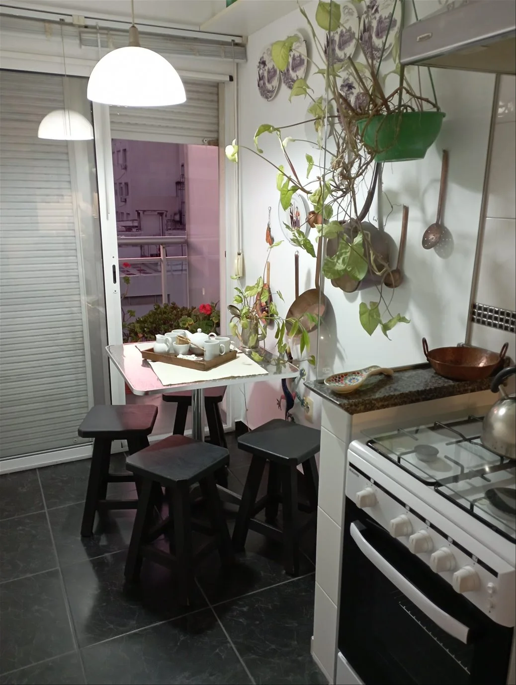 Espaciosa cocina con agua caliente y lugar con una mesa, con campana y espacio para lavadora. Cuenta con toda la línea blanca.