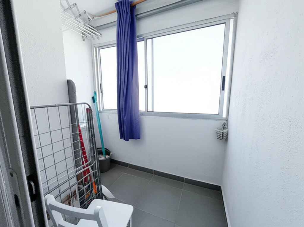Living y comedor al frente a gran terraza con mesa con sillas. Vista súper despejada. Cocina al frente grande muchos placares con lugar de comedor diario, lugar para lavadora.