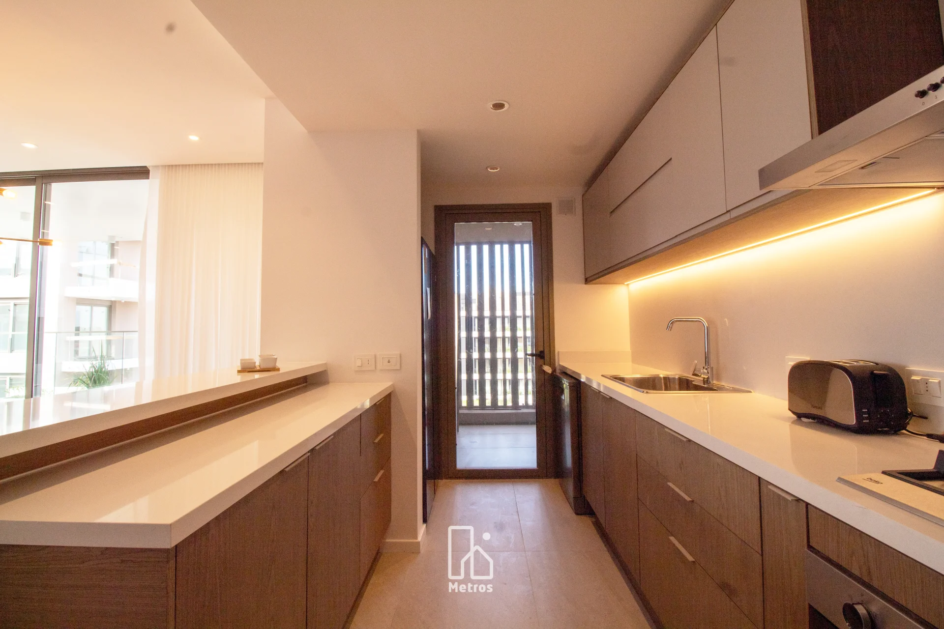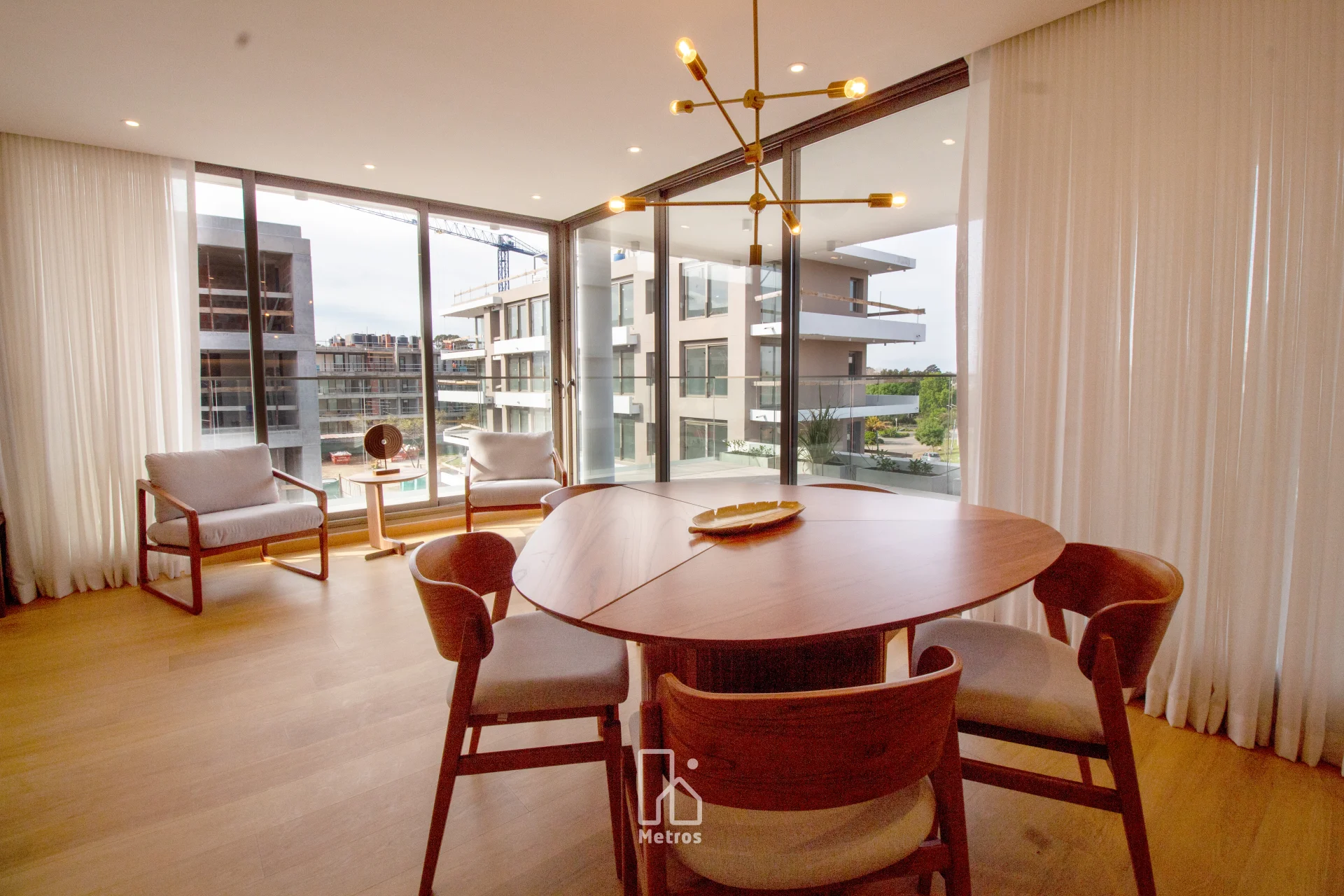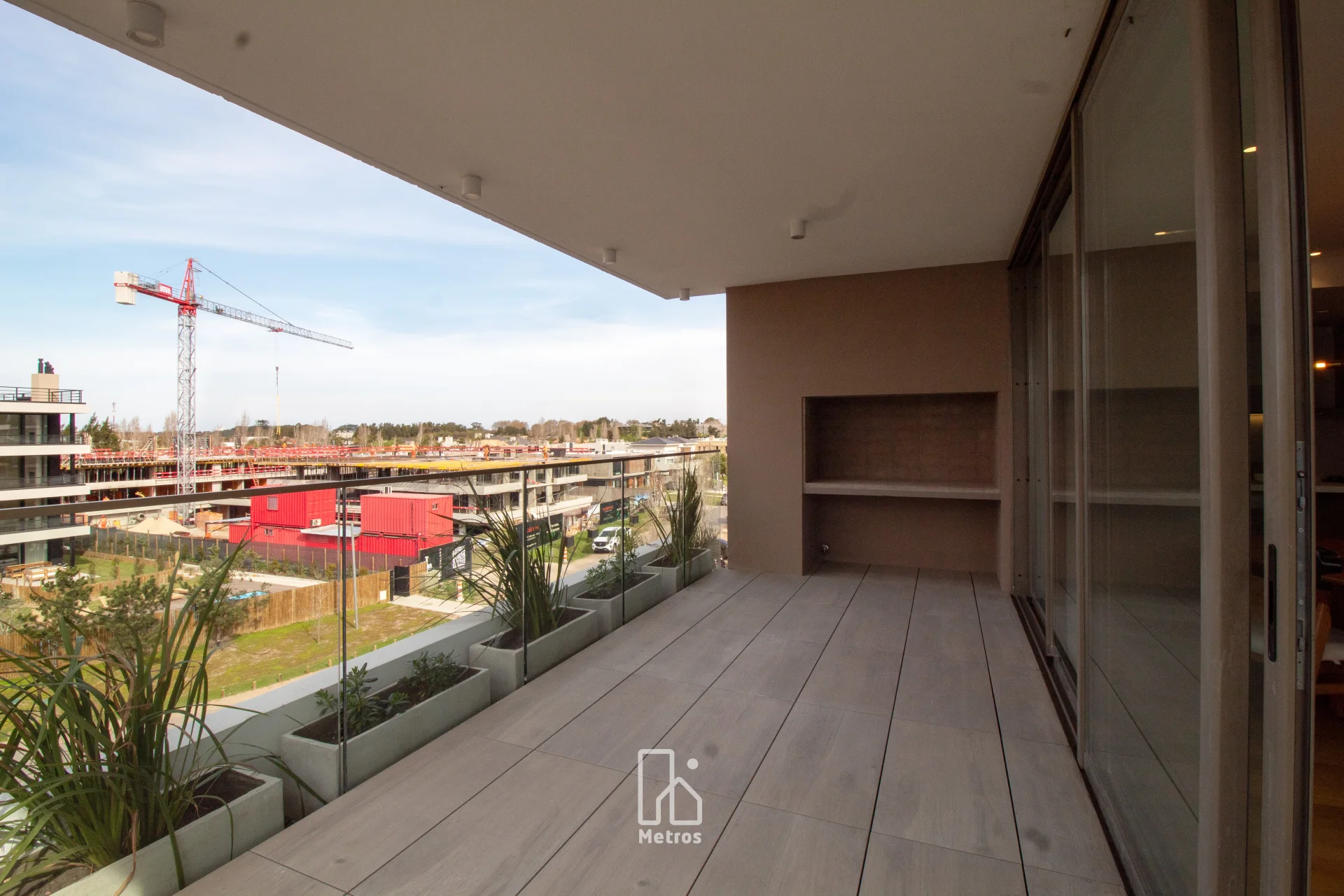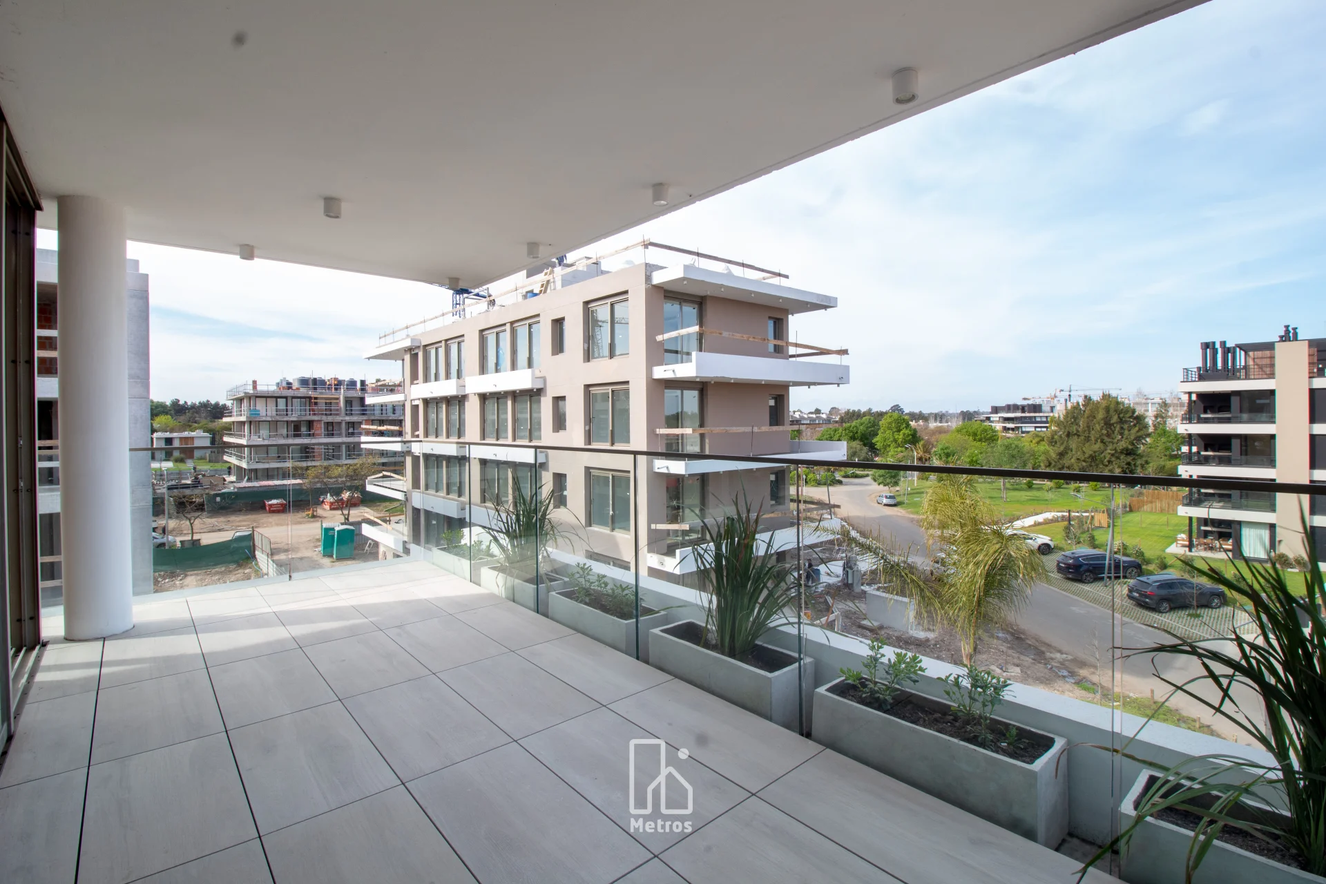 DESTACAMOS Proyecto único en Latinoamérica • A estrenar • Gran terraza al norte + Parrillero • Orientación Norte • Excelentes amenities • Barrio con seguridad EL BARRIO El complejo se ubica en uno de los barrios semi cerrados más exclusivos de Montevideo: Barrio Parques, en Carrasco Norte, rodeado de buen paisaje y tranquilidad. Viví tranquilo con la seguridad que el complejo te ofrece. Cuenta con vigilancia las 24 horas del día, para que tus chicos puedan disfrutar en todo momento. Ubicado a 30 min del centro de Montevideo, a 5min de los Colegios más importantes de la capital, a 10 del Aeropuerto de Carrasco y a 10min del Centro de Carrasco. EL EDIFICIO - AR Proyecto único en Latinoamérica, primer complejo wellness de la región orientado íntegramente al bienestar. Combina residencias de alta gama con un SPA de 650 m² y una completa propuesta de servicios para el cuidado físico, mental y emocional. Piscina interior, hidromasaje, sauna, gimnasio de última generación, salas de meditación y masajes, junto a rutinas personalizadas como yoga, aquaspinning y caminatas al aire libre. Todo en un entorno natural de 5.900 m², con materiales sustentables y tecnología aplicada al confort AMBIENTES 2 dormitorios • Terraza + Parrillero • Gran Living comedor • Cocina semi definida • 2 baños • Lavadero • Cochera • Box EL APARTAMENTO Ubicado en piso 3. El apartamento cuenta con 107m2 interiores + 23m2 de terraza. El ingreso al apartamento se da por un hall hacia el living comedor, el cual es muy iluminado ya que cuenta con grandes ventanales en L hacia la terraza, con orientación al norte, ¡la mejor iluminación natural durante todo el día! La terraza es amplia, cuenta con parrillero y espacio para muebles de exterior. La cocina es definida con bajomesada y aéreos de melamínico. Cuenta con 2 dormitorios, el principal en suite. Todos cuentan con placares de melamínico y cortinas de enrollar en las aberturas, ¡todos con orientación al norte! Se destaca por sus terminaciones de gran calidad, toda mampostería tradicional, incluso en las divisiones internas. Cuenta con aberturas DVH y calefacción por losa radiante, además de aire acondicionado en todos los ambientes. Cuenta además con Mampara y espejo en los baños, Cortinas en todo el apartamento, Campana, Horno, Anafe y Luminarias. El precio de alquiler incluye Garaje y Baulera PRECIOS Y GASTOS Gastos comunes estimados: $20.000 Comisión inmobiliaria: 1 mes alquiler + iva ¡Te deseamos suerte en tu búsqueda, y estamos para ayudarte tanto con esta propiedad o también para ayudarte buscando otras opciones en todo el mercado! No dudes en contactarnos. Inmobiliaria Metros Consulta nuestra web y redes sociales para encontrar otras oportunidades