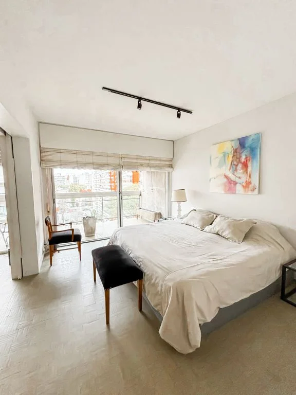 Al ingresar a la propiedad, se encuentra un recibidor el cual divide la propiedad en sus distintos sectores. El living al frente es apaisado y súper amplio con vista despejada hacia de Av Brasil y Pimienta donde no hay edificios que interfieran en la vista e impidan la luminosidad. Desde el living se accede a gran terraza de 18m2, muy disfrutable. El living se conecta a través de puertas corredizas con la suite principal la cual cuenta con vestidor y vista también al frente. El segundo dormitorio dispone de dos sectores y puede alquilarse con una o dos camas individuales o con una cama doble.