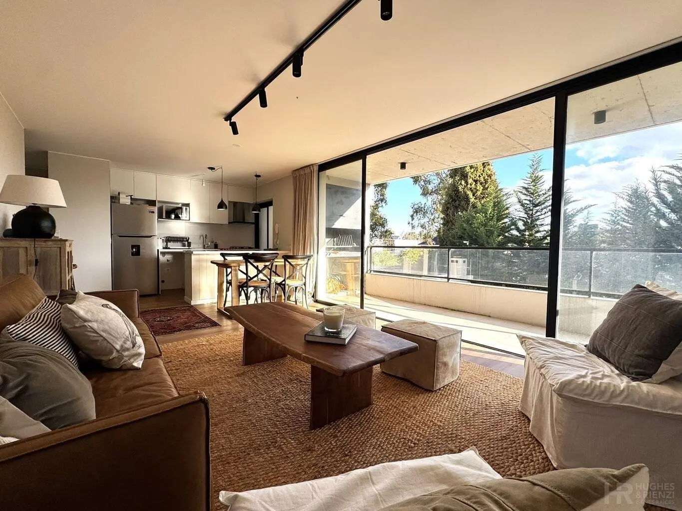 Cocina integrada por barra y terraza lavadero.