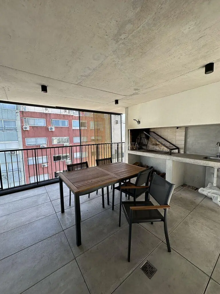 Apartamento todo al frente, tiene un living comedor super amplio con cocina integrada, definida mediante una barra divisoria y placares sobre y bajo mesada. Campana extractora.