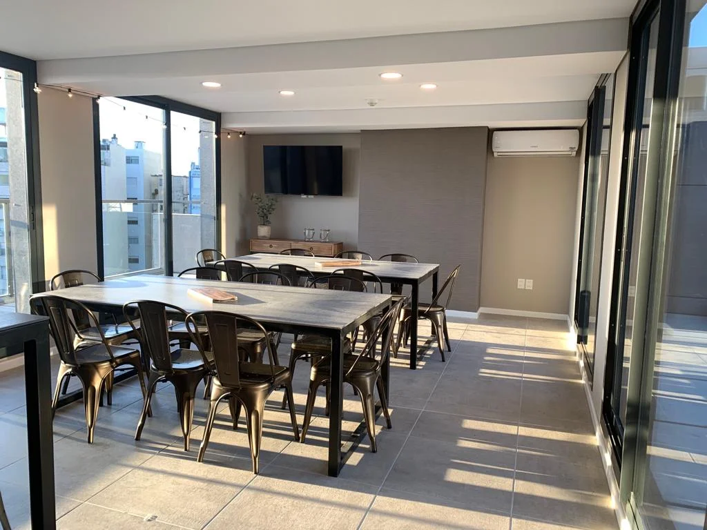 El apartamento viene equipado en cocina con horno, anafe, campana, calefón 60 litros, conexión para lavarropas, aire acondicionado en el living y en cada dormitorio, video portero