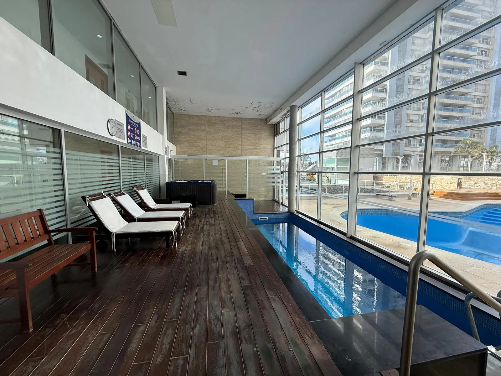 2 dormitorios 2 baños Cocina equipada Balcón con parrillero Piso 4 con vista destacada Amenities del complejo: Gimnasio Salones de fiestas para adultos y niños Plazas y áreas verdes con juegos infantiles Guardería Lavadero 7 piscinas (4 cerradas, 1 con hidromasaje, y 3 al aire libre, 2 climatizadas con solárium) 4 saunas (masculino y femenino) Jacuzzis Canchas de squash, básquetbol y fútbol 3 salas ejecutivas de reuniones Sala de juegos para adolescentes y adultos 3 salas gourmet 6 barbacoas Sala de espera para visitas