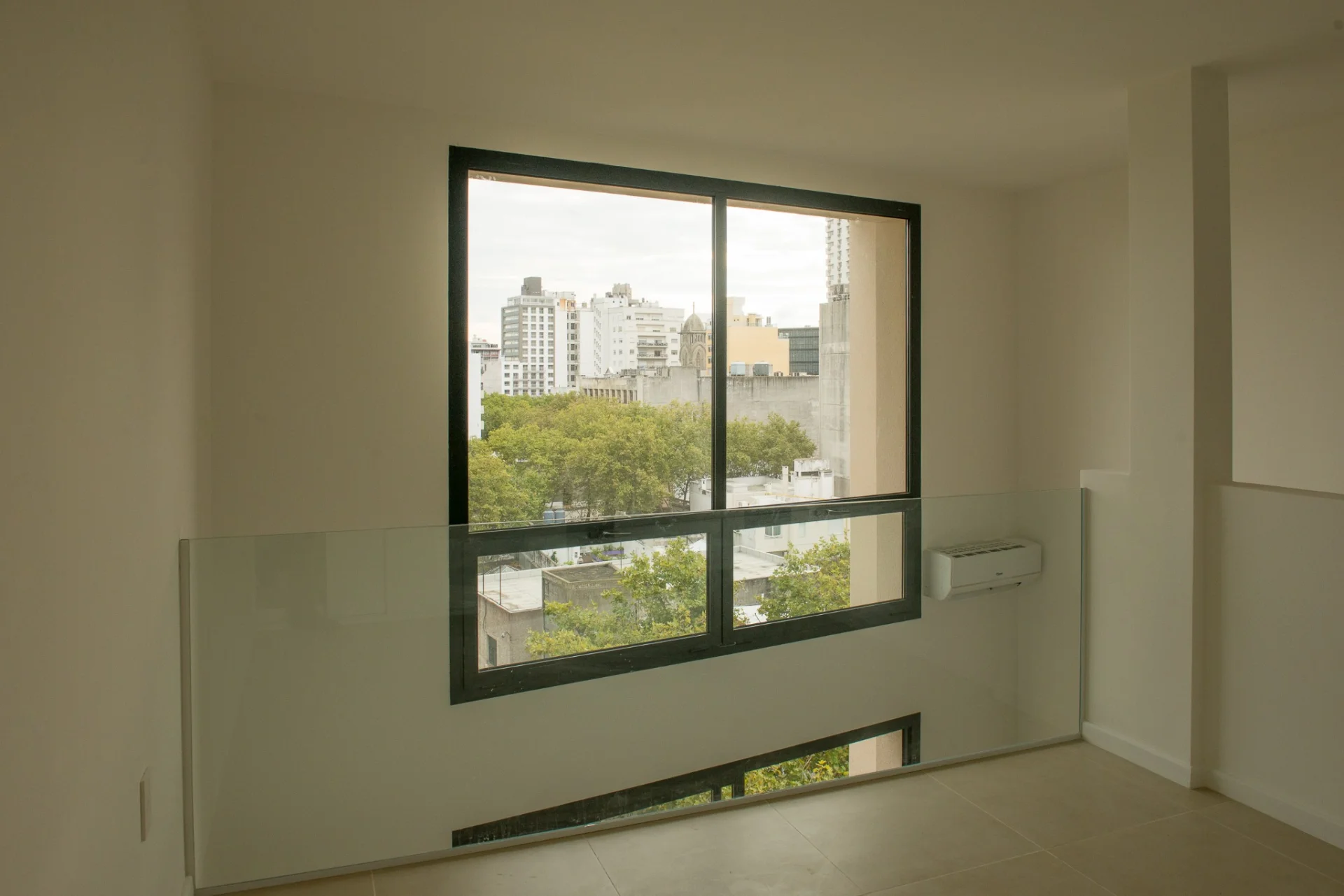 Cuenta con aire acondicionado y persianas en las aberturas