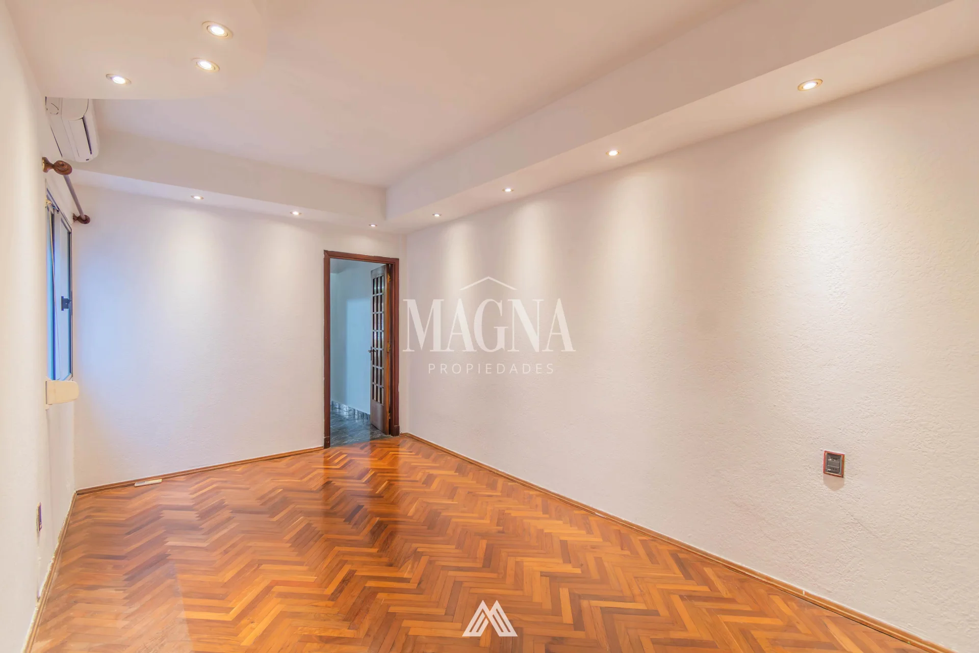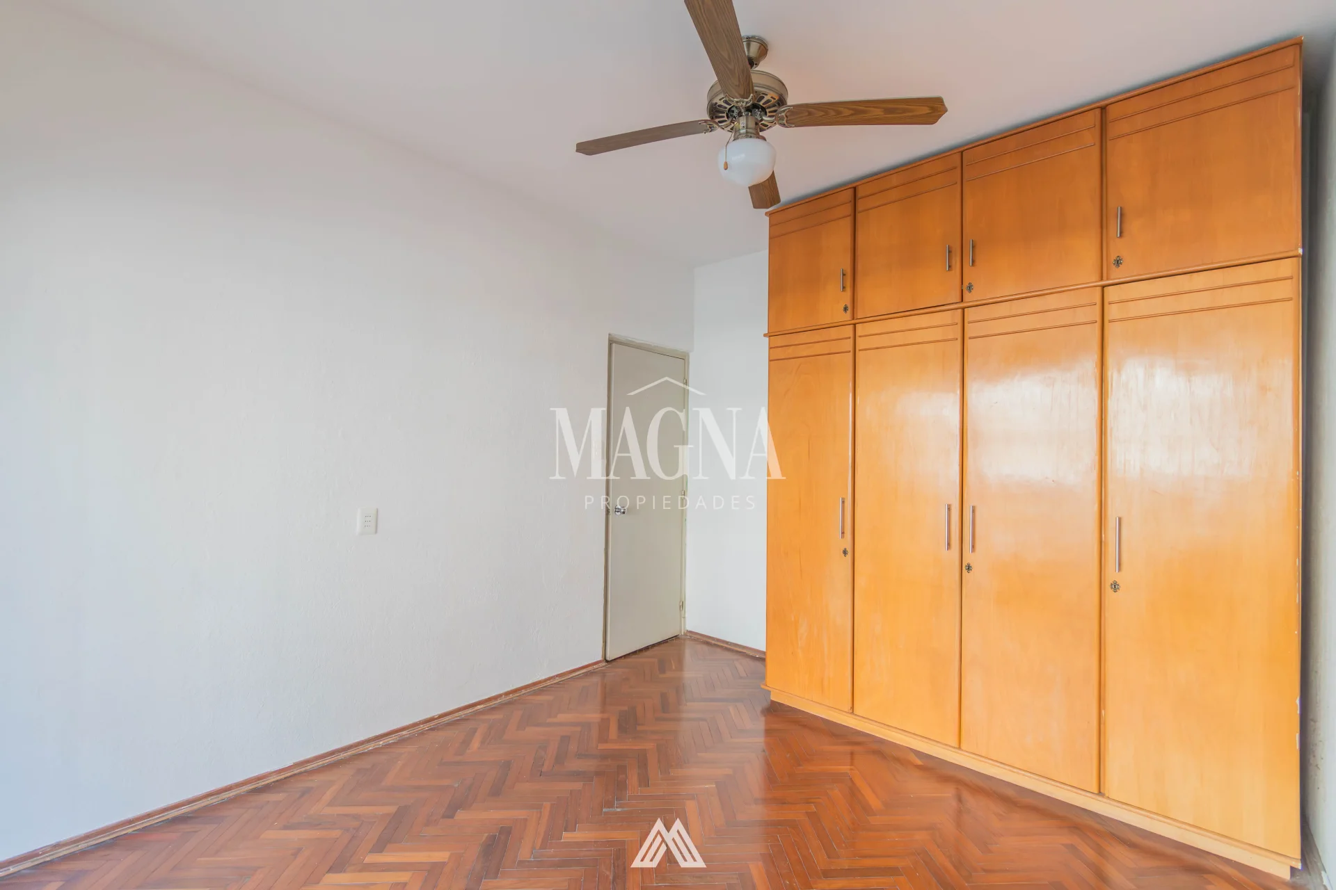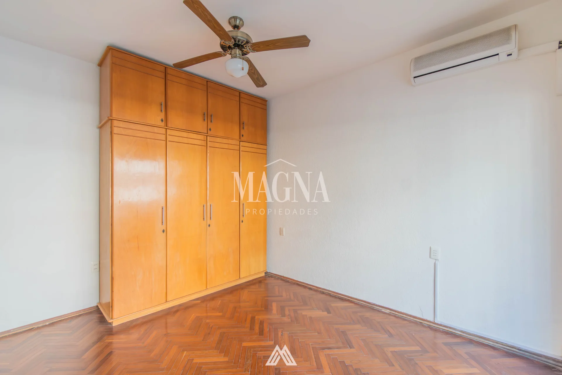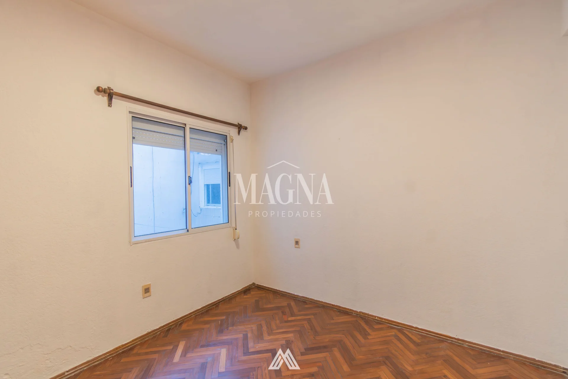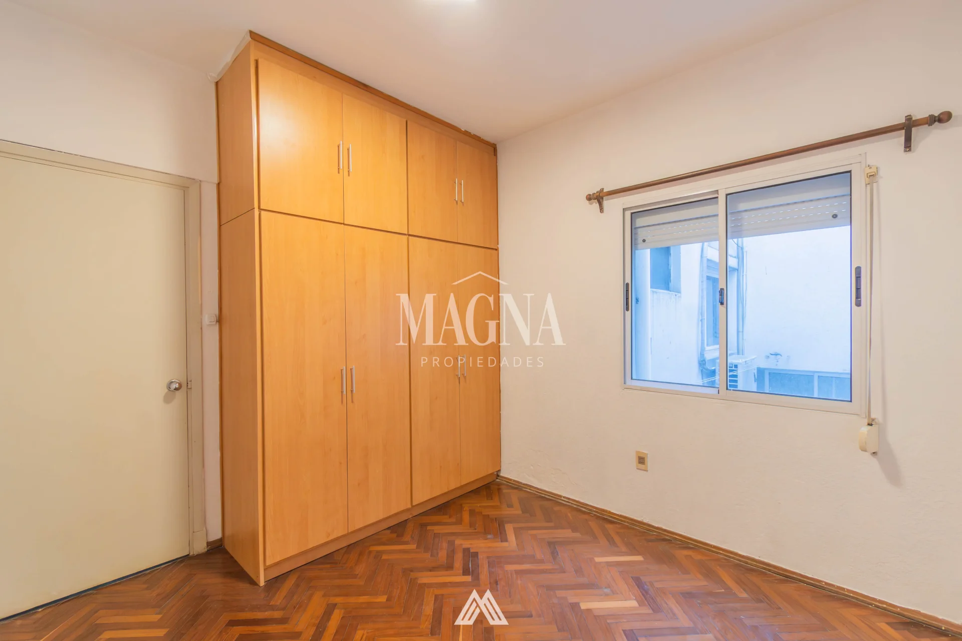 • 2 dormitorios amplios con pisos de parquet y placares: Dormitorio principal al frente, con aire acondicionado y salida a un pequeño balcón. Segundo dormitorio con ventana al pozo de aire.