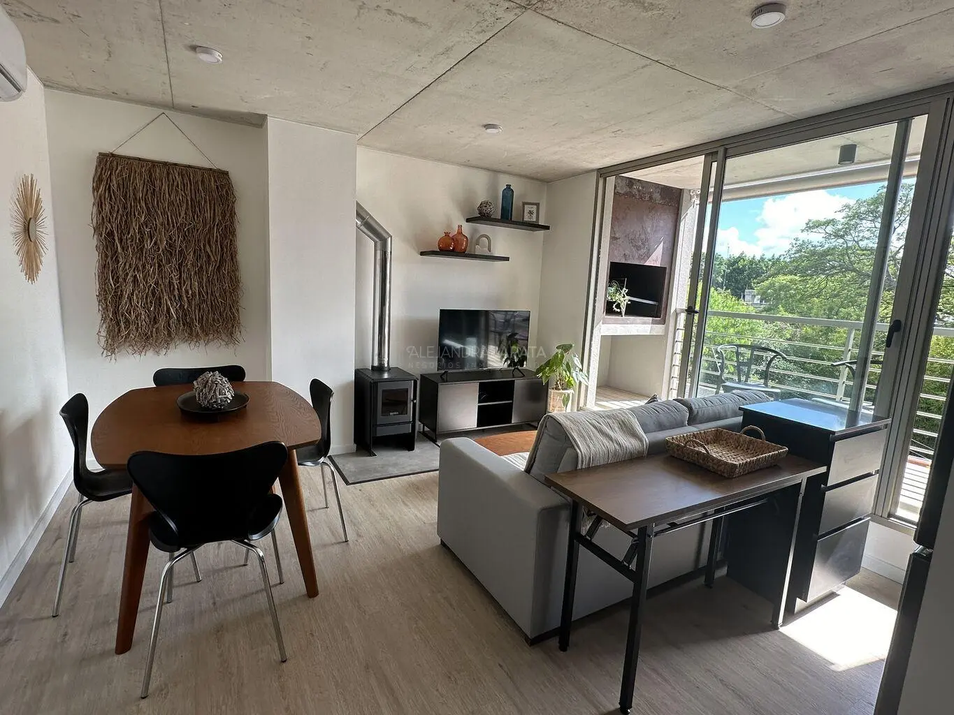 Precioso apartamento en Malvin totalmente amoblado moderno, cómo a estrenar!!!. Edificio ecológico construido en un entorno verde, cercano al Parque Baroffio, y a solo 500 m del Shopping Portones.
