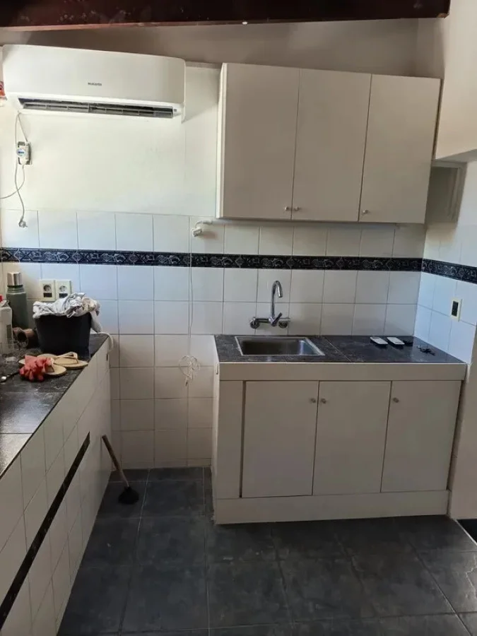 . Cocina integrada con placares y conexión para lavarropas