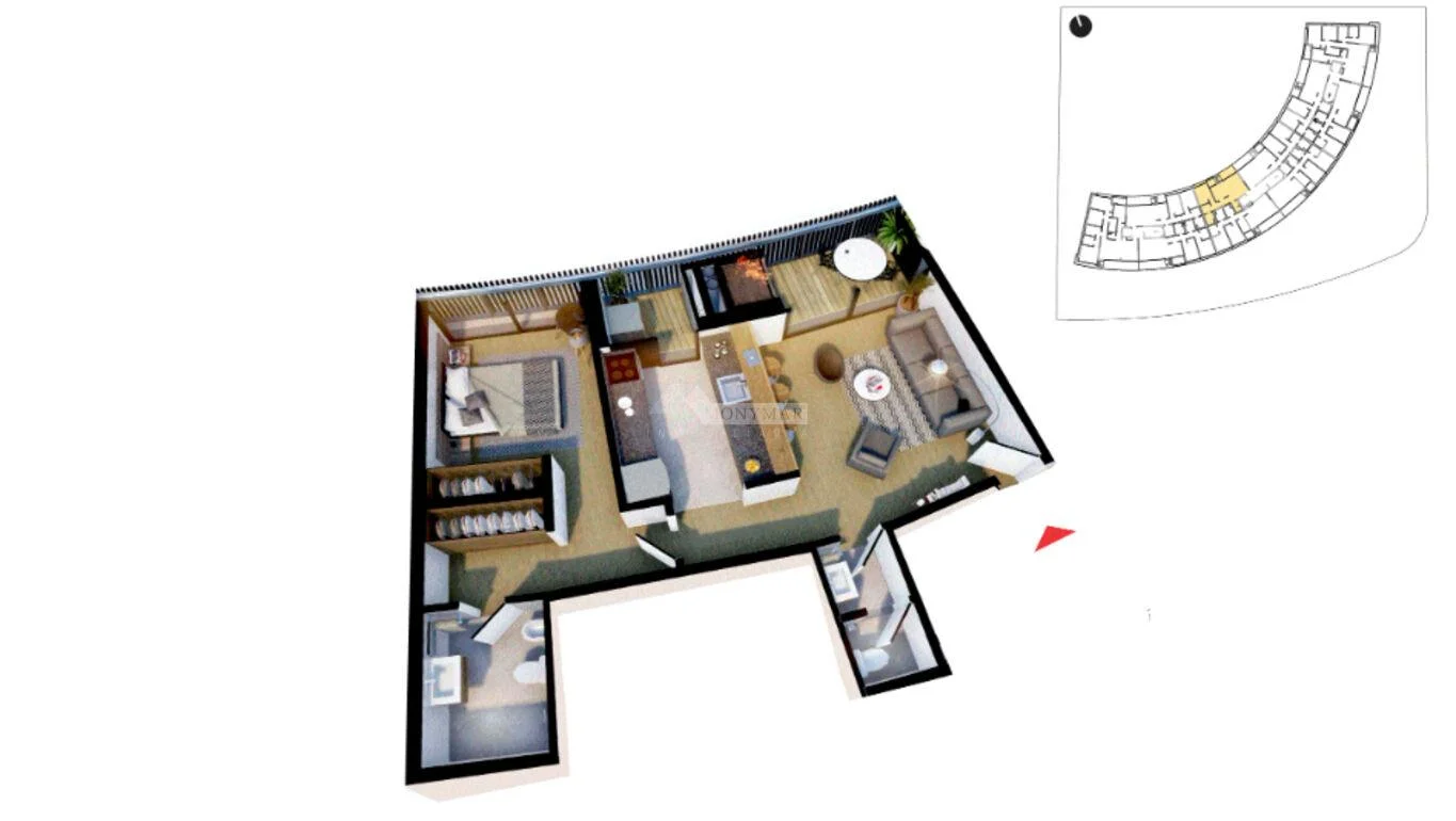 403) Área Total: 68,39 m2 (Área Privada 55,93 m2 + Área común 2,65 m2 + Terraza 9,81 m2)
