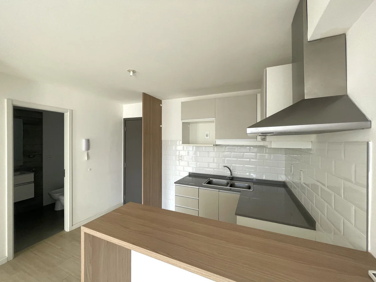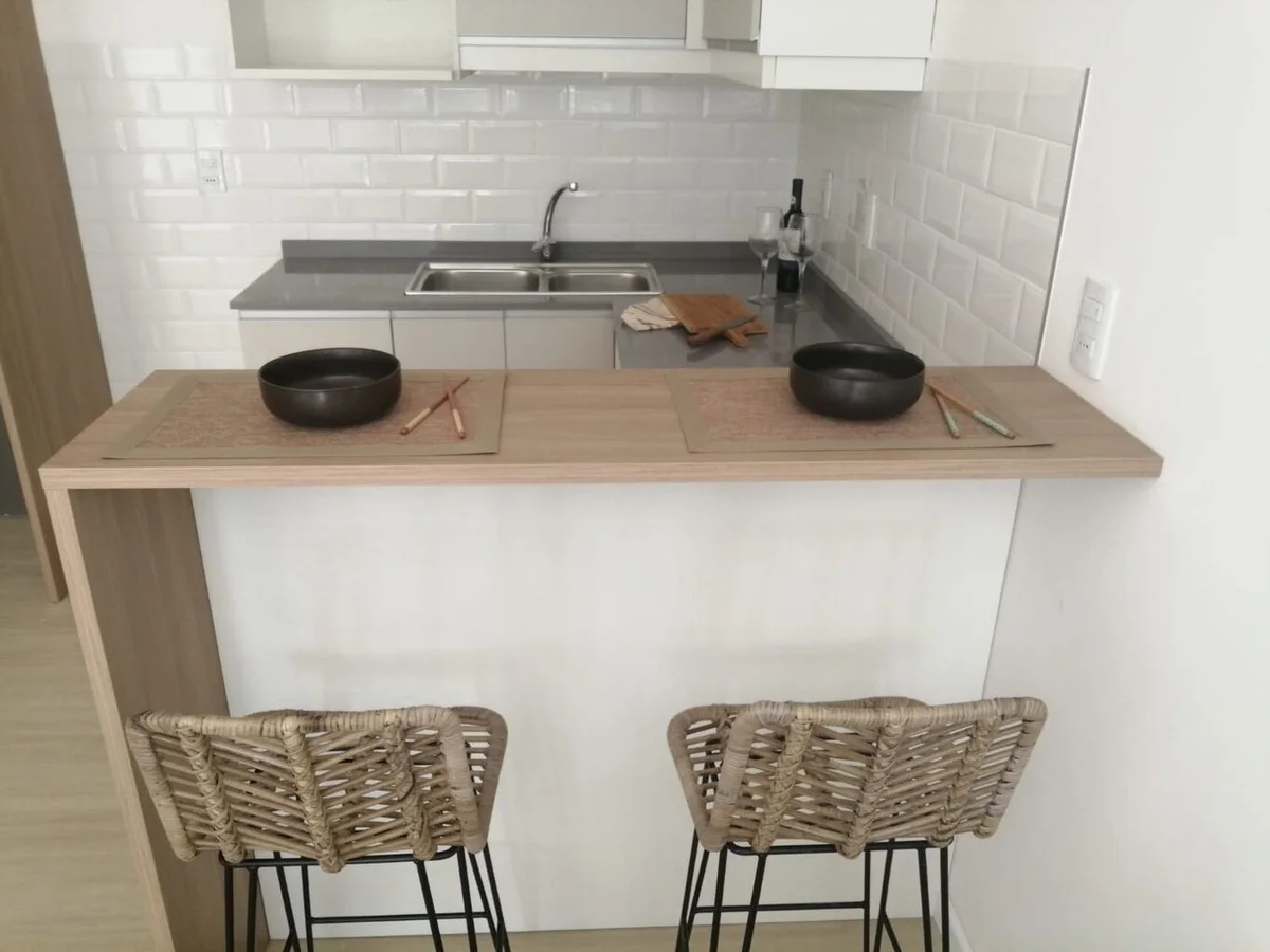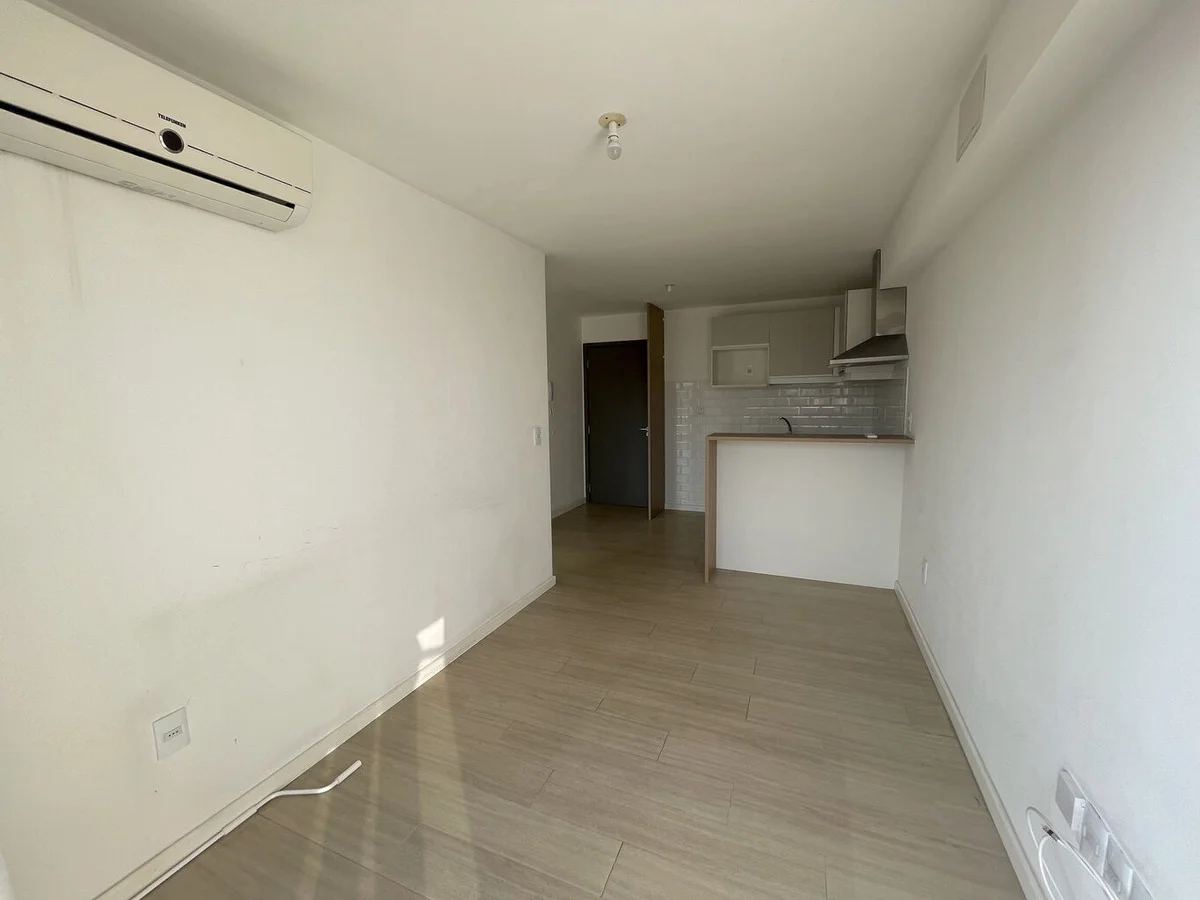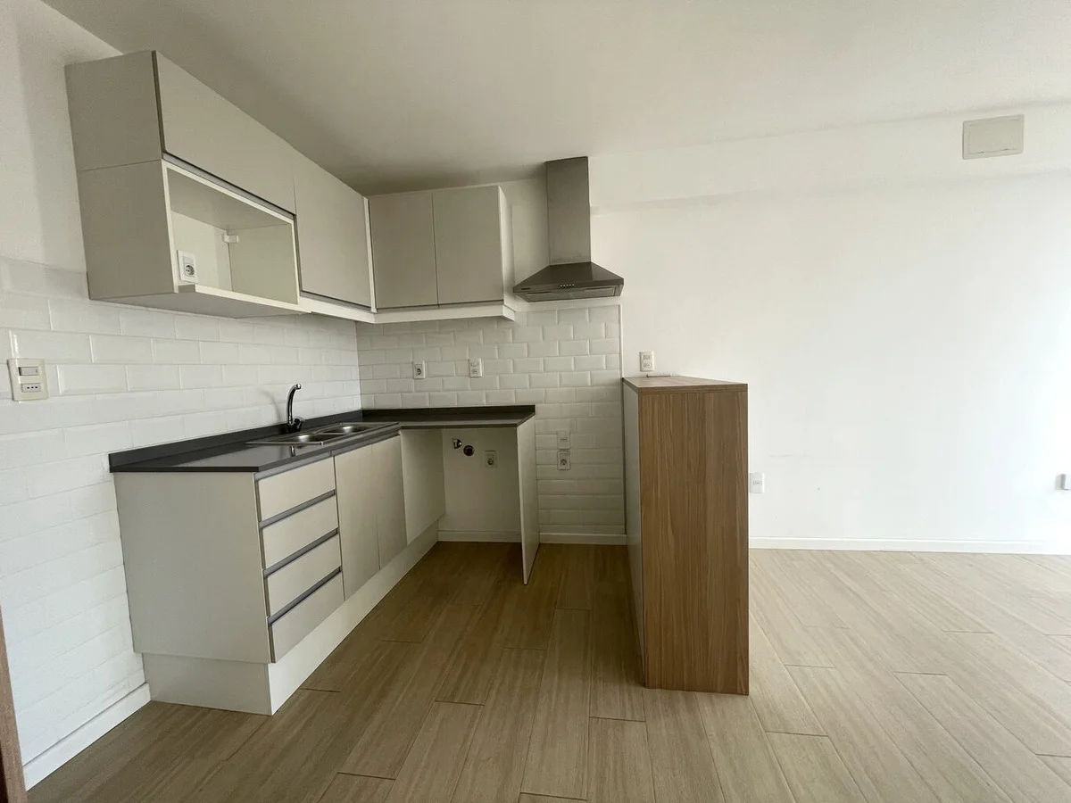 Cocina integrada a través de barra estilo americano, con campana instalada, placares aéreos y bajo mesada, nicho con previsión para lavarropas de carga frontal.