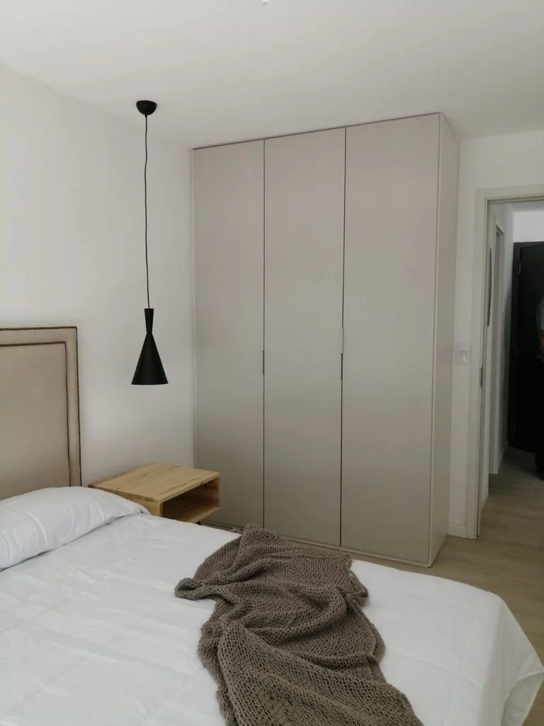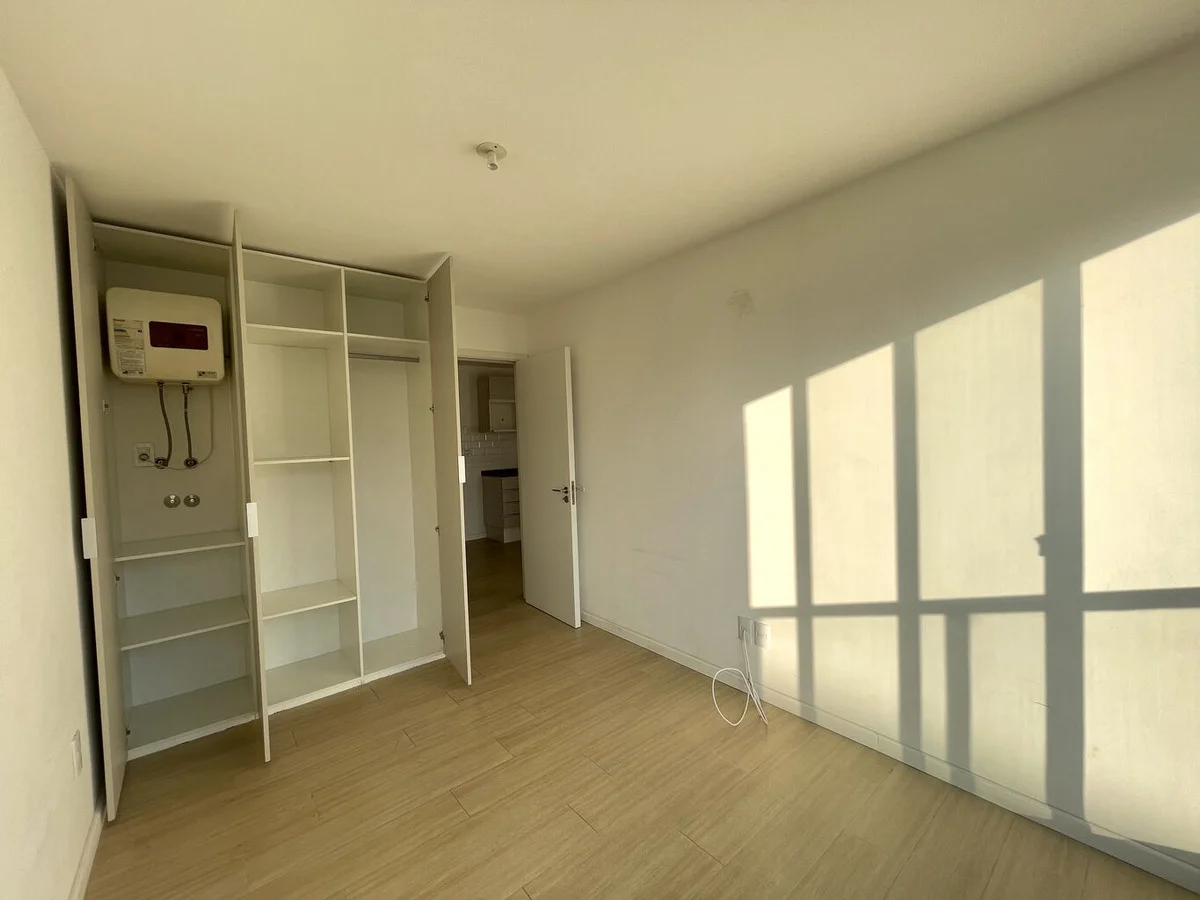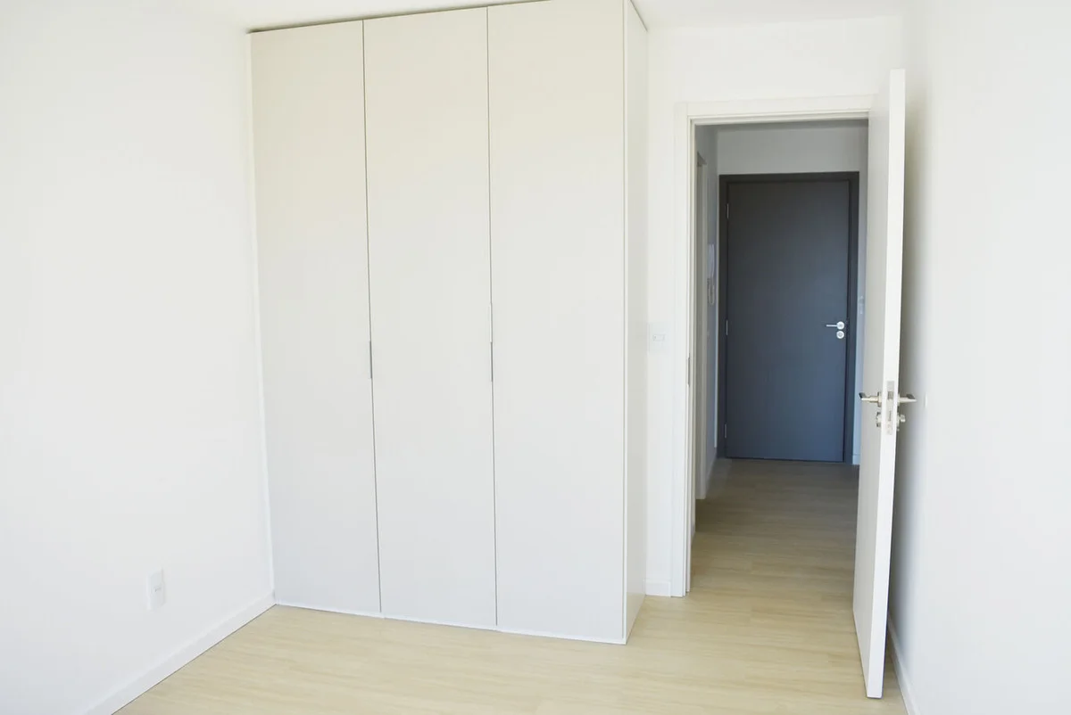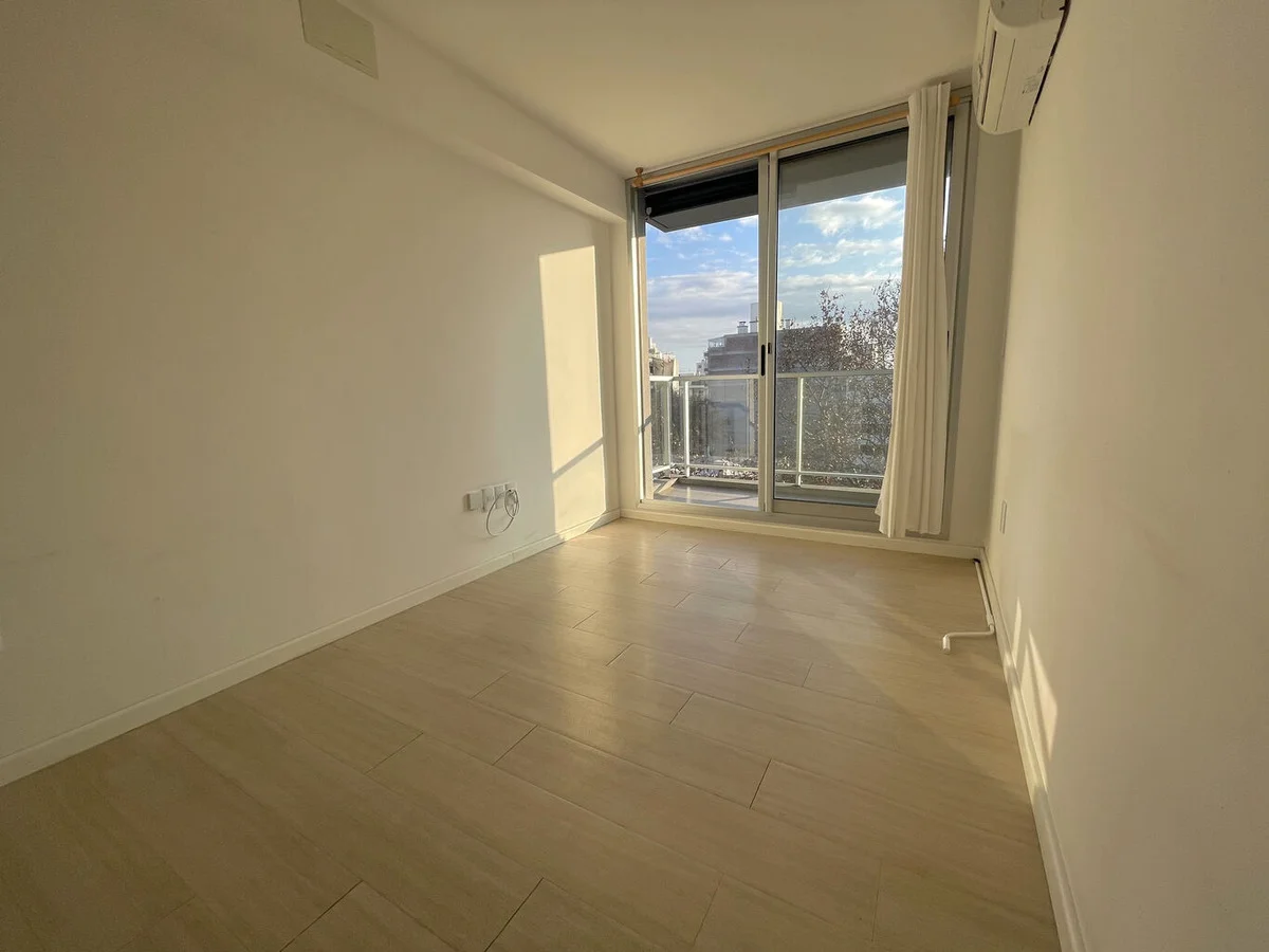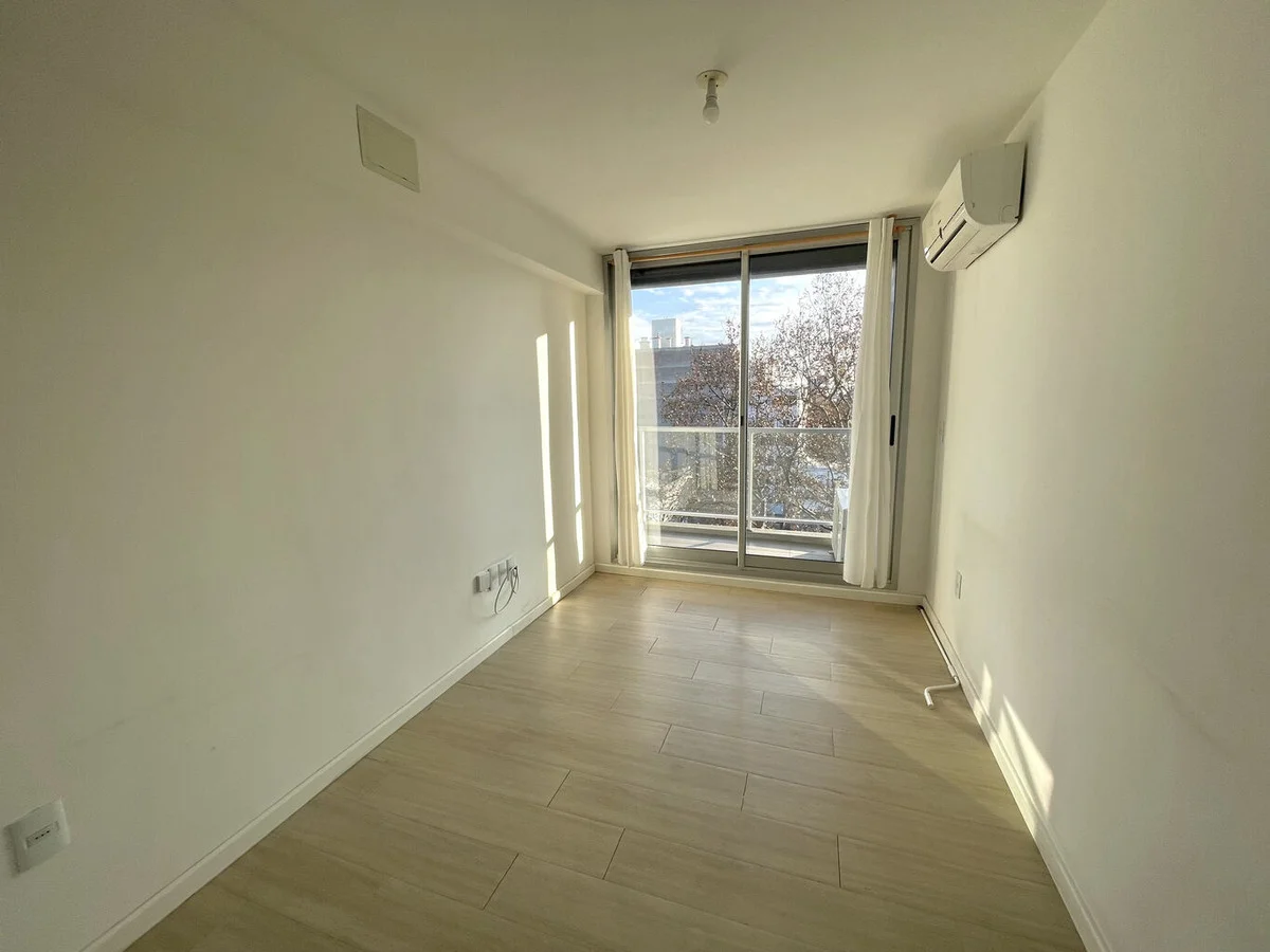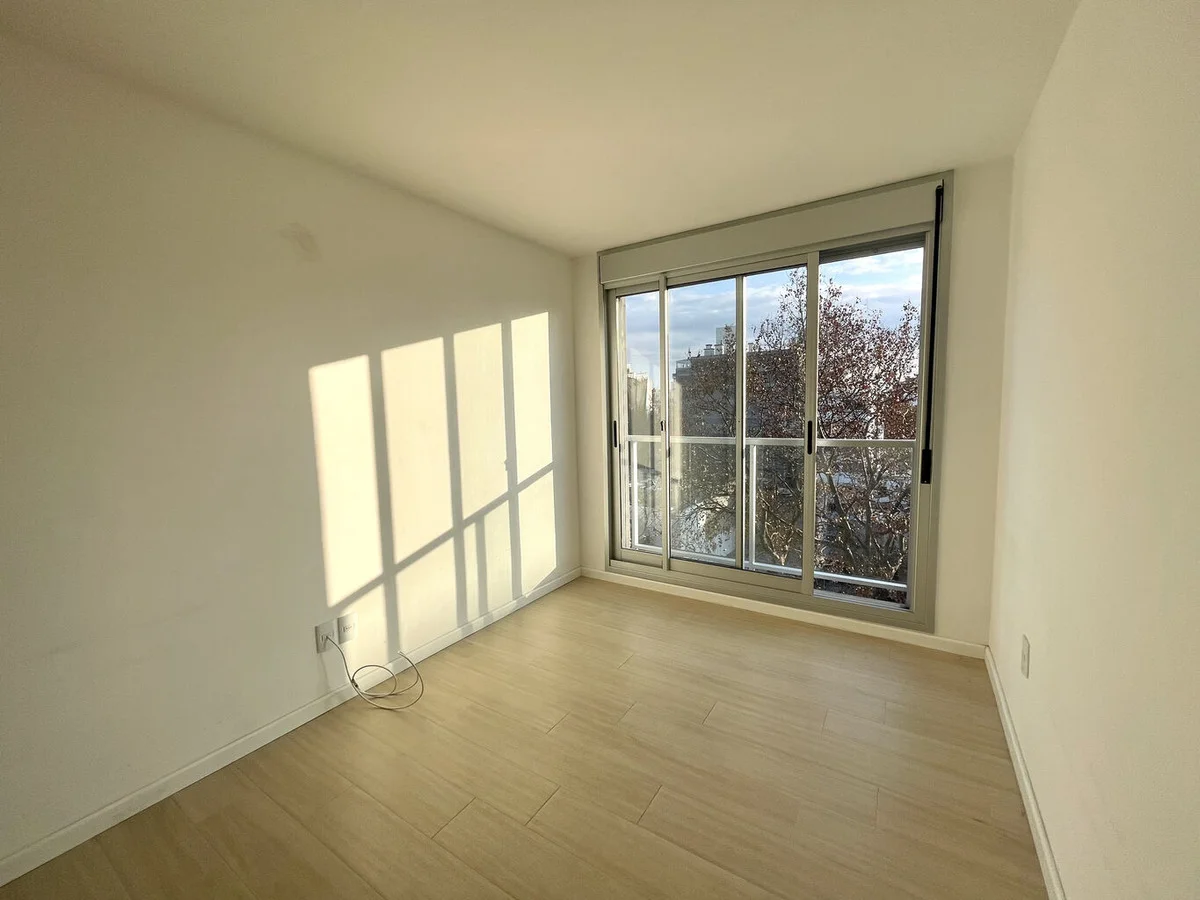 Dormitorio al frente con placar cuatro puertas, persiana de enrollar, ventanal hasta el piso con baranda de seguridad.