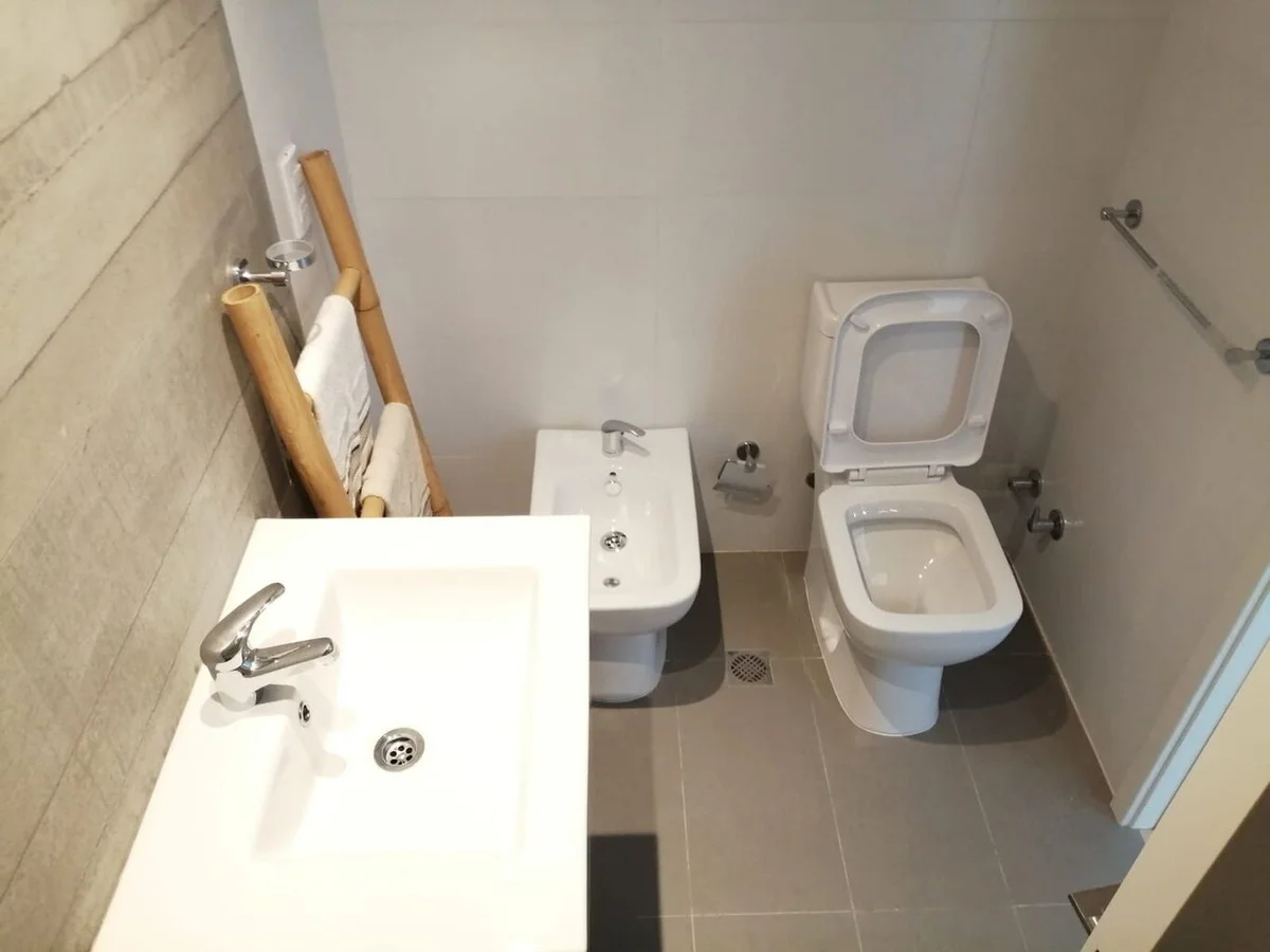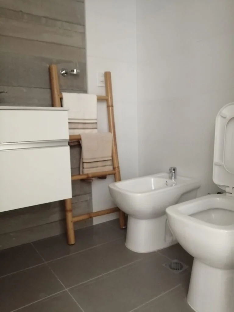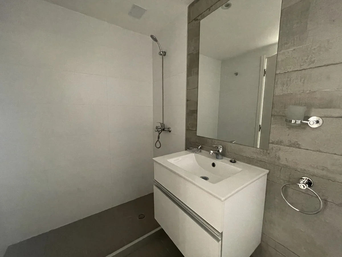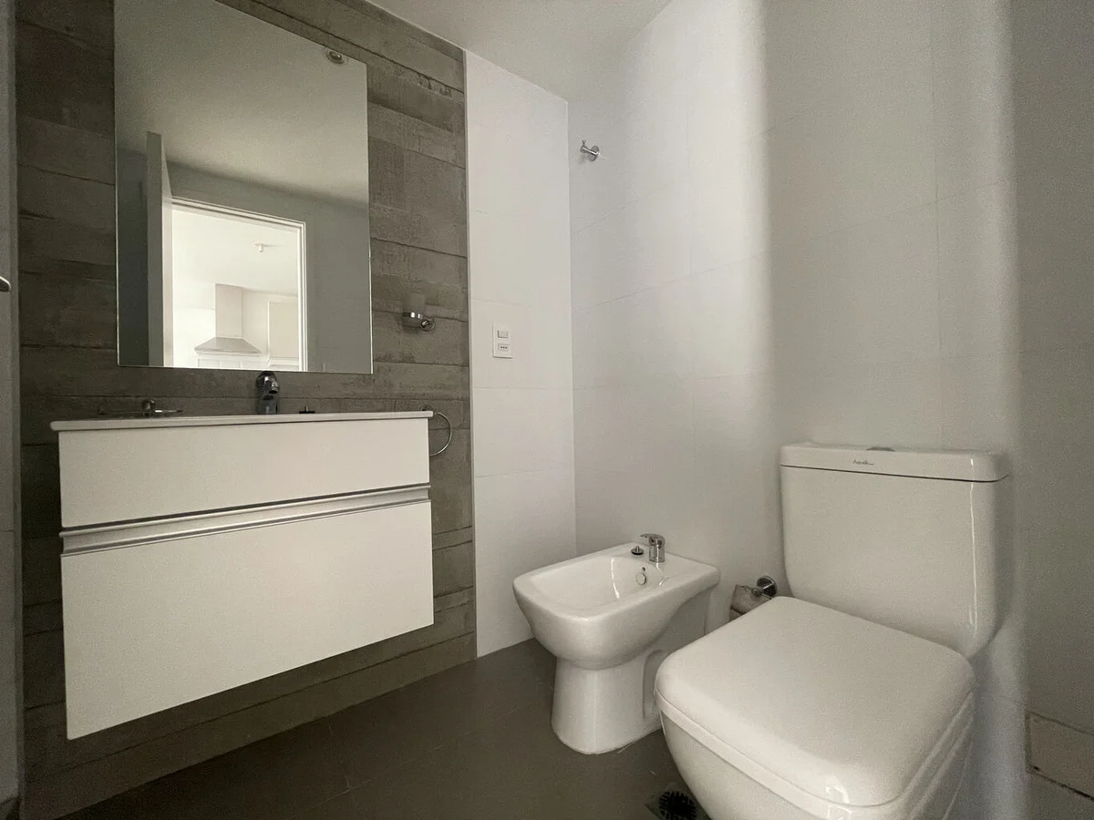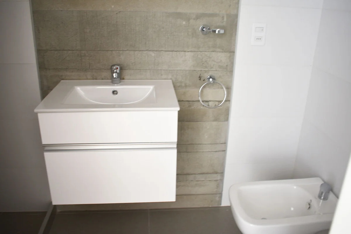 Baño completo, bacha con cajón corredizo y espejo instalado.