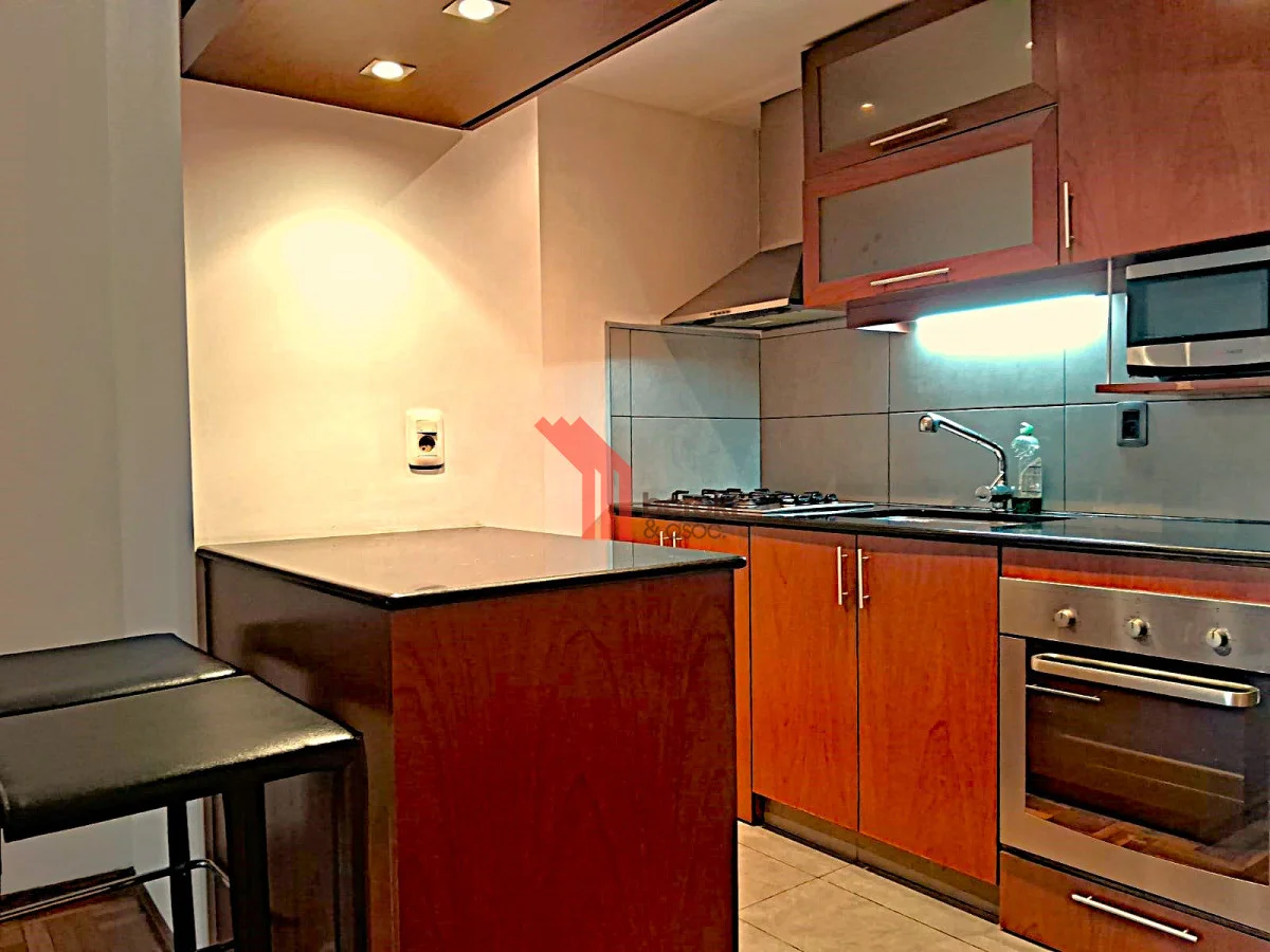 La unidad cuenta con una moderna cocina americana con anafe, horno empotrado, campana, microondas y lavarropa que se integra perfectamente al living-comedor, creando un ambiente ideal para disfrutar de momentos únicos. Su diseño optimizado maximiza el espacio, brindando un lugar perfecto tanto para relajarse como para recibir a amigos y familiares.