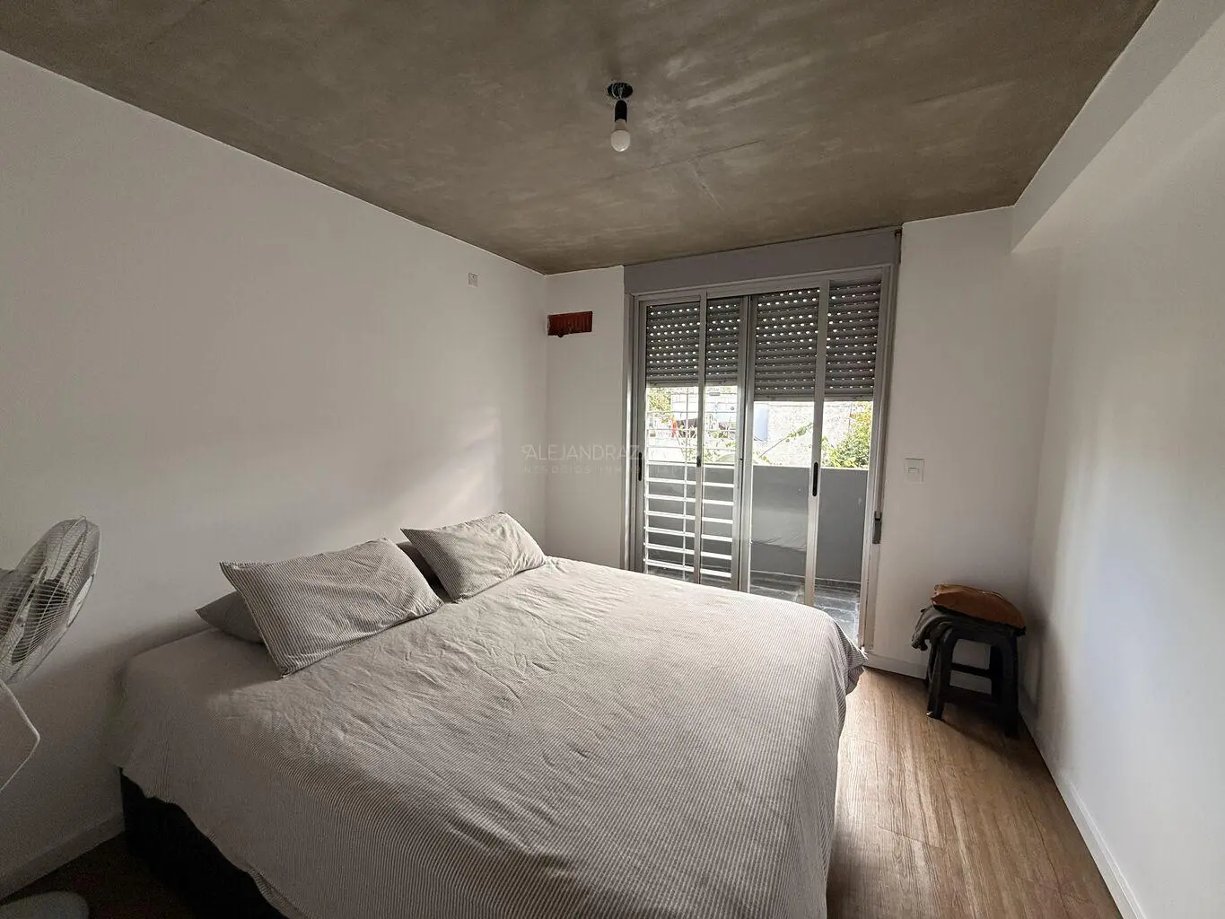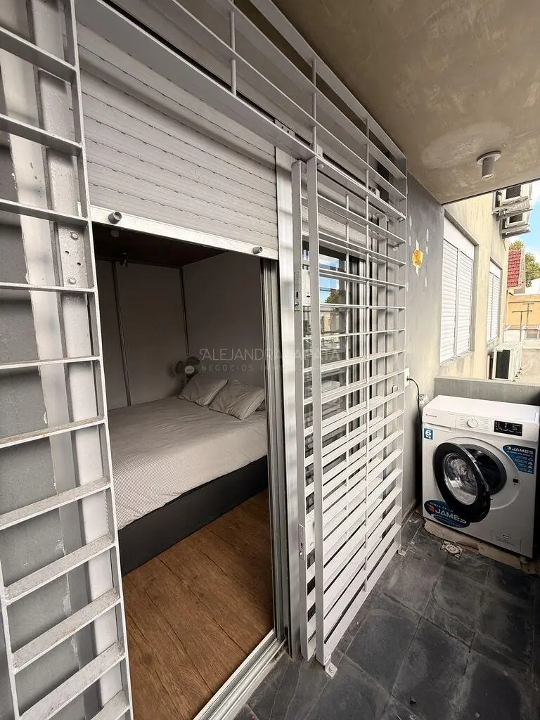 Dormitorio al contrafrente con salida a la terraza lavadero con grandes ventanales con rejas.