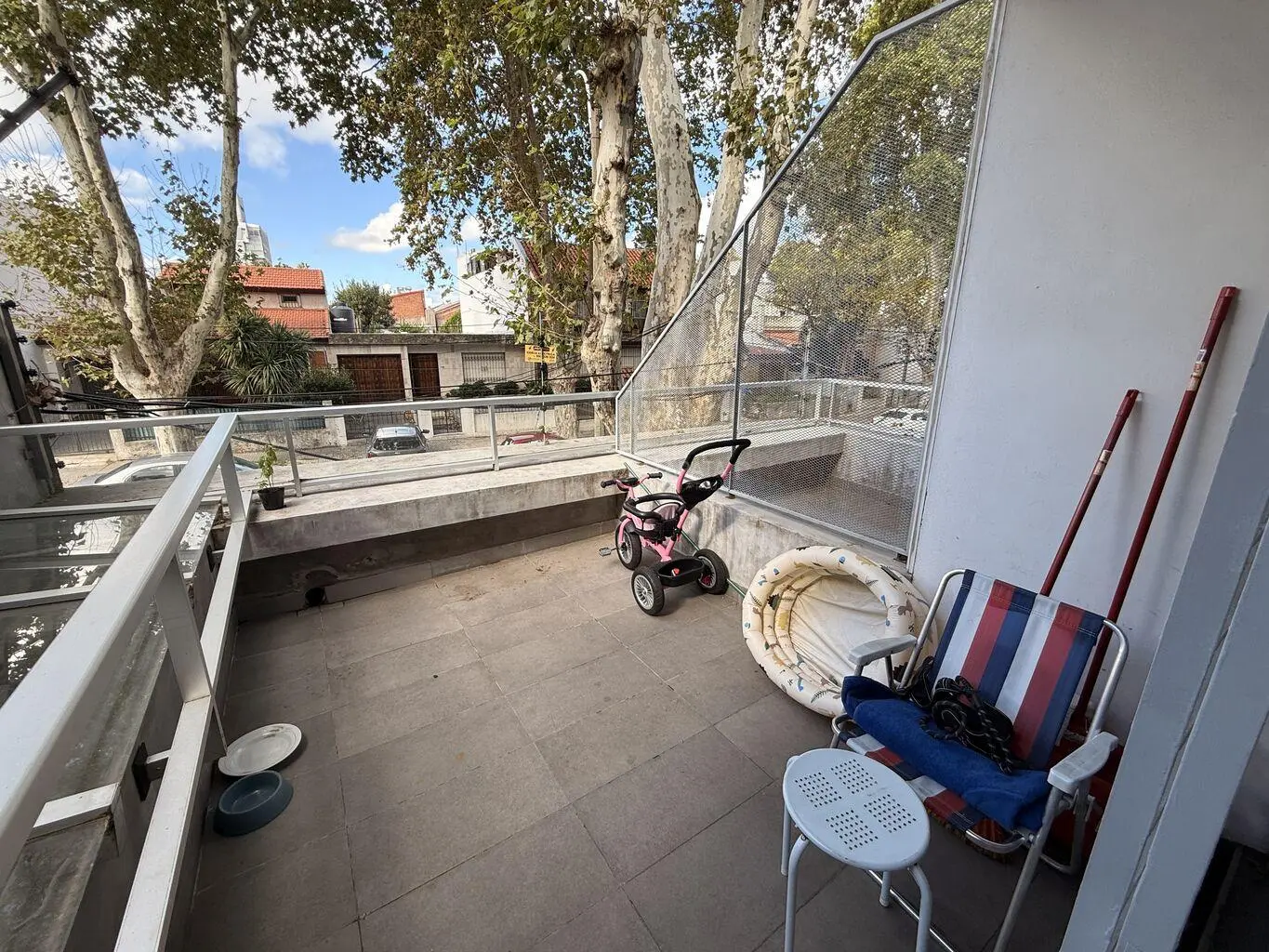 se encuentra en el primer piso y tiene una gran terraza al frente como si fuera un patio de 10 m.c.