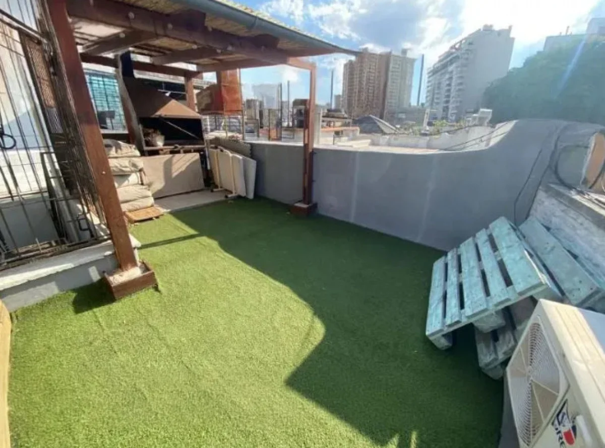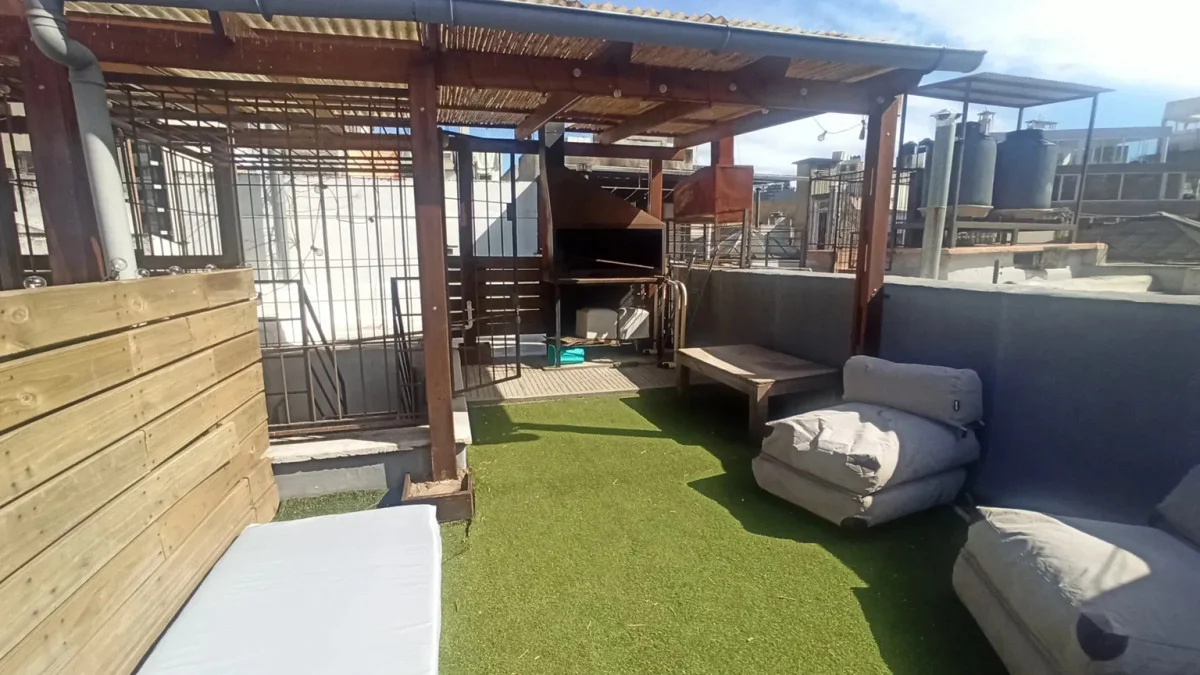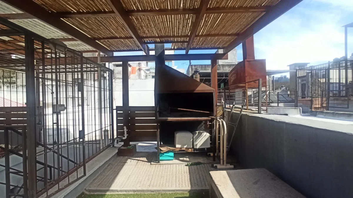 . Azotea tipo terraza privada con parrillero y pergola que da sombra