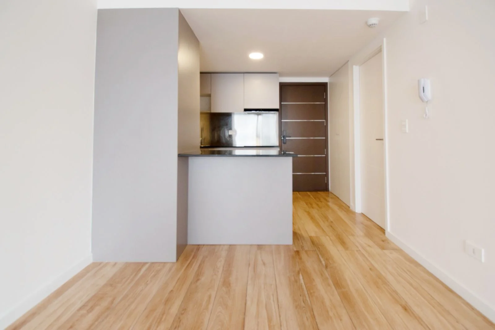 Living-comedor con cocina semi-integrada con isla, equipada con horno empotrado, anafe y campana de extracción. También cuenta con calefón, 2 equipos de aire acondicionados y persianas eléctricas en dormitorio. Dormitorio con vestidor..